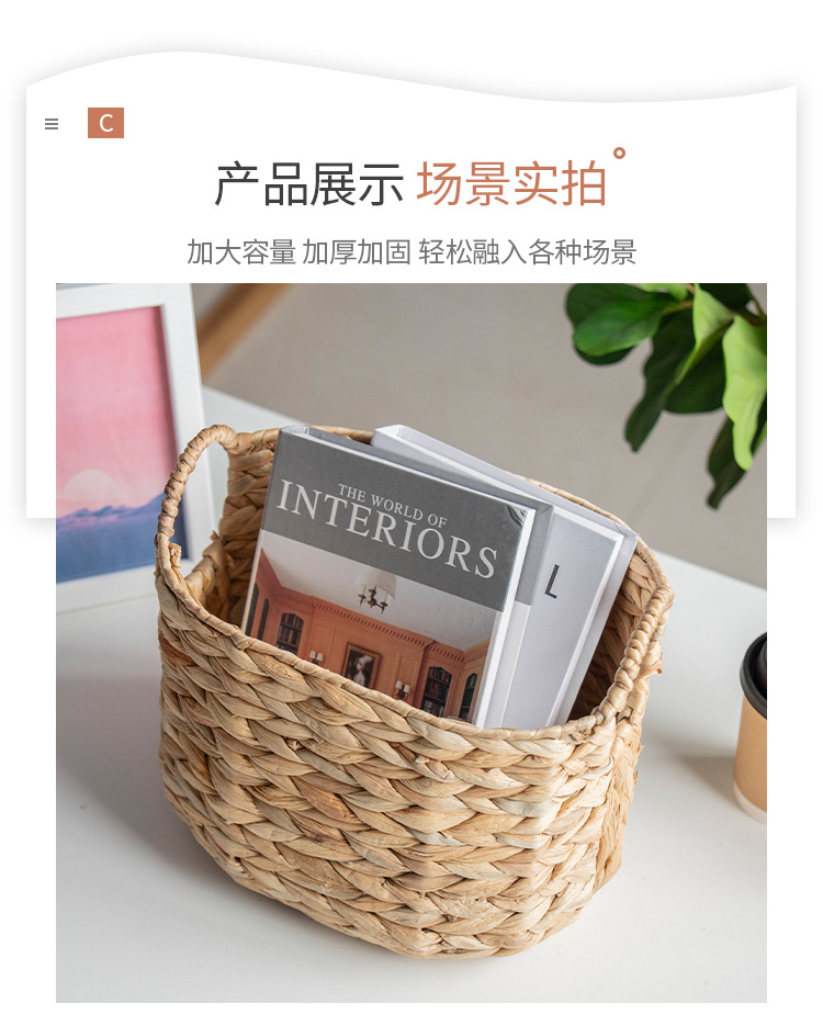 | Color | La hierba de calabaza contiene doble manija redonda B boca: 28 * 20 fondo: 24,5 * 15,5 altura: 22 / 25 vientre: 30 mango: 8,5, cesta rectangular de papel de hierba de calabaza de color original, cuerda de hierba de mar con ventana plegable, cesta hueca de hierba de calabaza con color original, cesta cuadrada de hierba de calabaza con plegado de color original, manga de hierba de calabaza con tejido mixto de hierba de mar con tejido horizontal de tres botones longitud: 31 ancho: 20 alto: 16 ventanas: 8 * 4, manga de hierba de calabaza con tejido mixto de hierba de mar con tejido horizontal de tres botones longitud: 35 ancho: 24 alto: 8,5 * 4 largo 39 de ancho: 28 de alto: 20 ventanas: 8,5 * 4 |