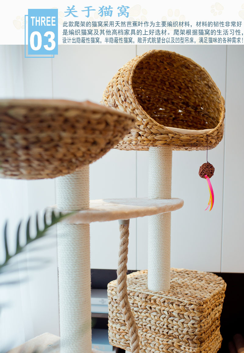 Hoja de plátano trenzado gran gato trepando gato árbol gato trepando gato trepando gato saltando gato agarrar tablero gato columna de seda