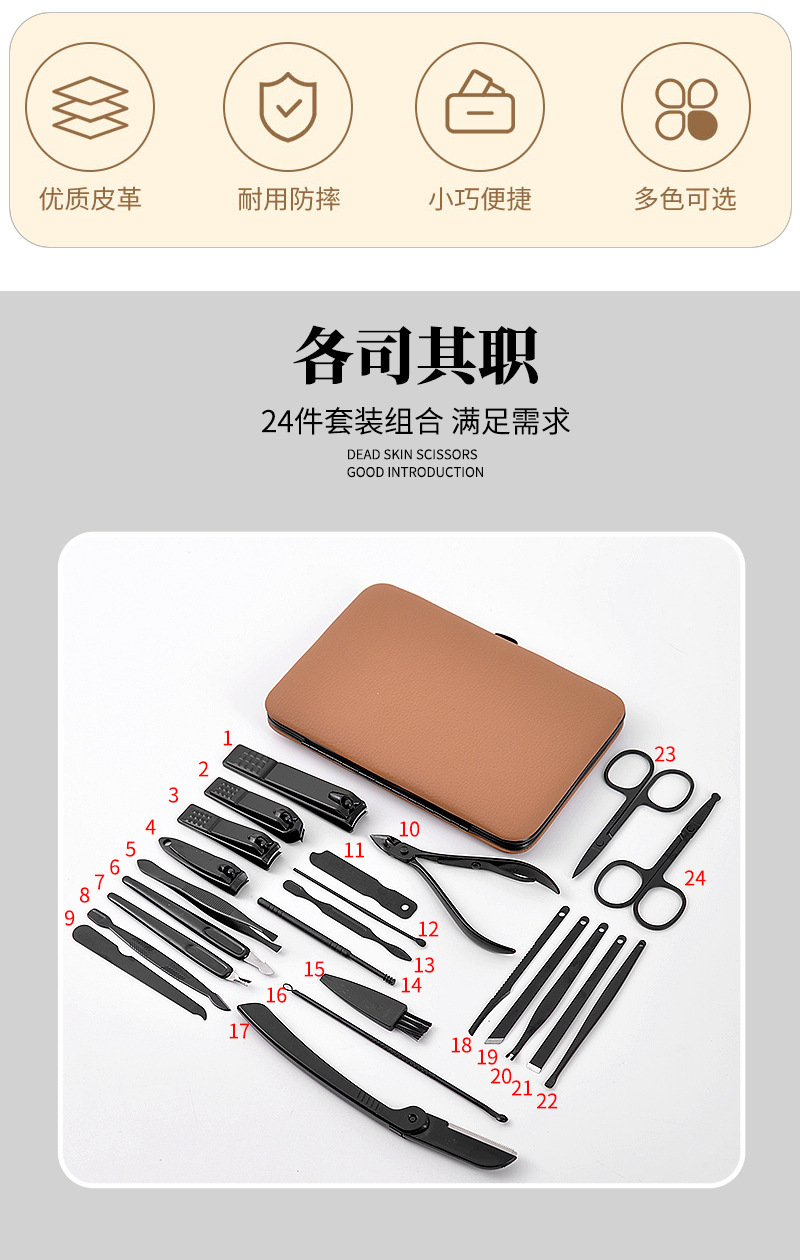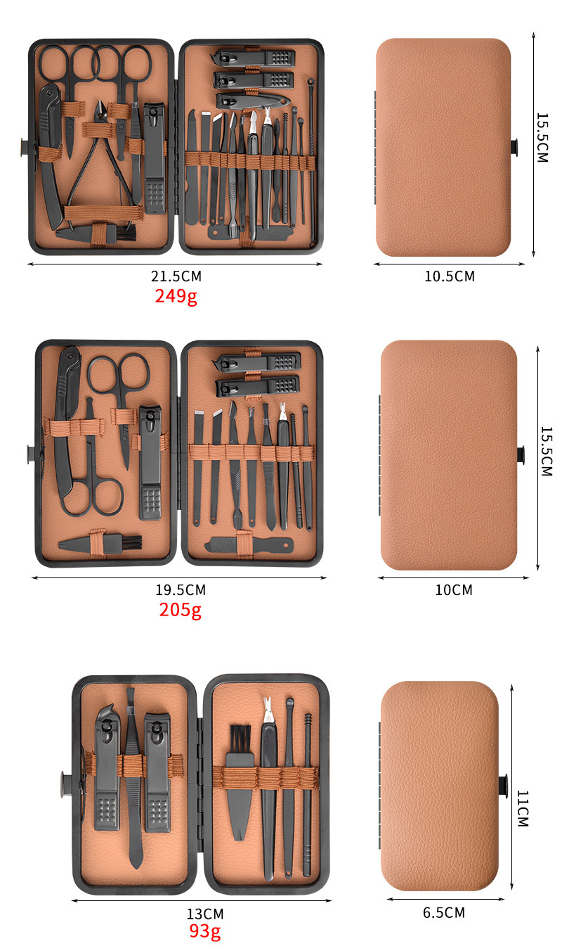 | Clasificación de colores | Juego de 7 piezas de cortaúñas marrón,Juego de 16 piezas de cortaúñas marrón,Juego de 24 piezas de cortaúñas marrón,Juego de 18 piezas verde oscuro,Juego de 7 piezas negro y rojo,Juego de 8 piezas negro y rojo,Juego de 10 piezas negro y rojo,Juego de 15 piezas negro y rojo,Juego de 18 piezas negro y rojo,Juego de 7 piezas de oro rosa,Juego de 10 piezas de oro rosa,Juego de 12 piezas de oro rosa,Juego de 16 piezas de oro rosa,Juego de 18 piezas de oro rosa,Juego de cortaúñas negro de 8 piezas (forro negro),Juego de cortaúñas negro de 15 piezas (forro negro),Juego de cortauñas negros de 24 piezas. |