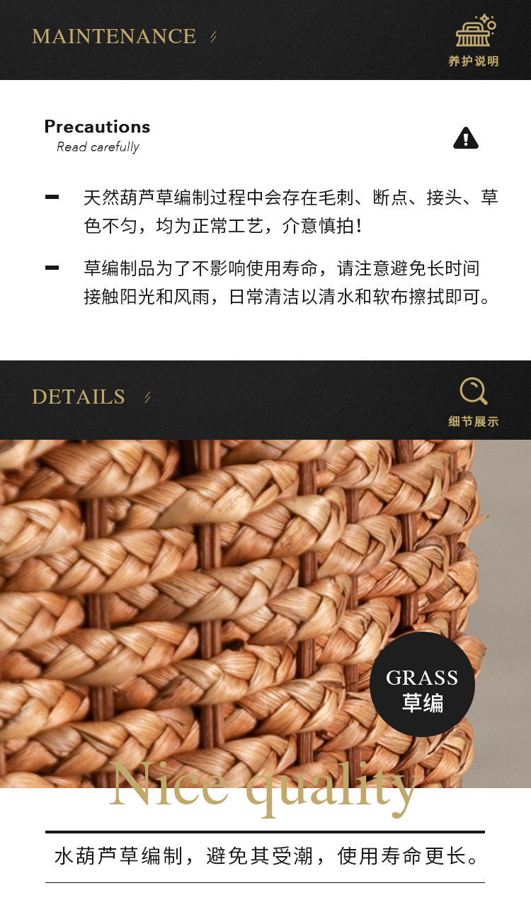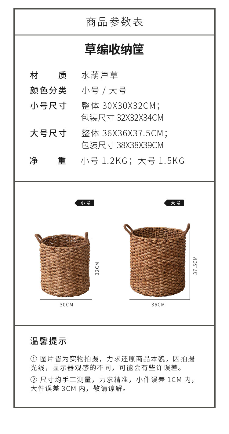 | Color | Cesta redonda de paja tamaño pequeño 30 * 32cm, cesta redonda de paja tamaño grande 36 * 37cm, cesta de lona |