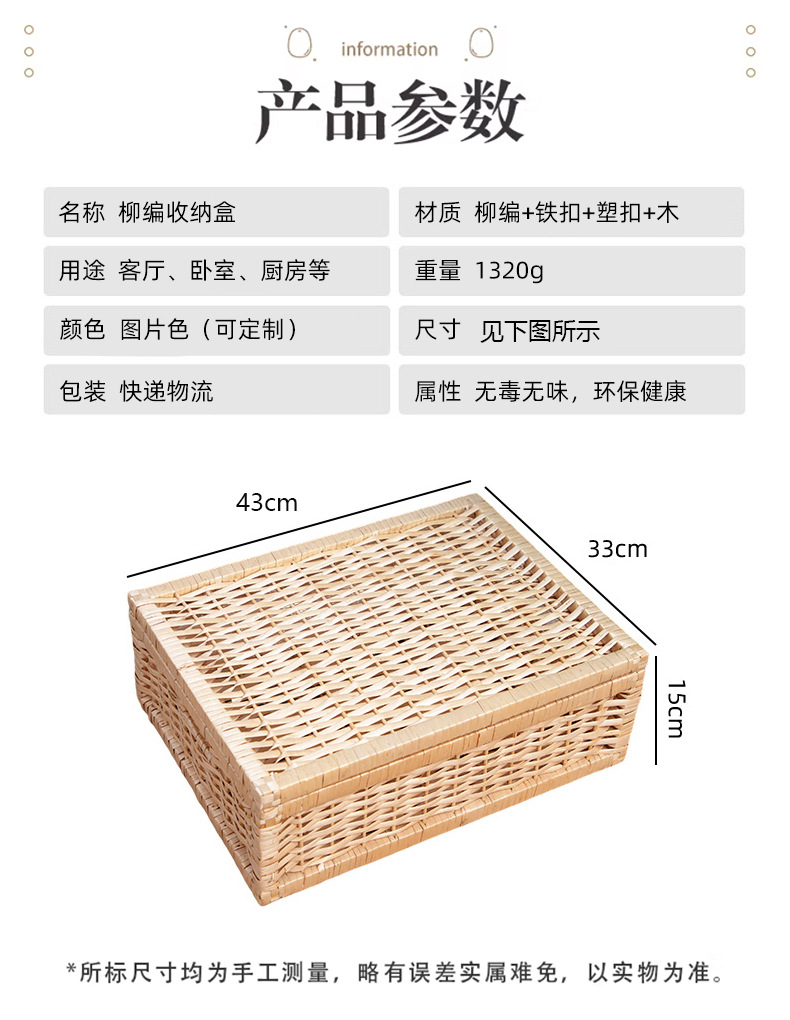 | Colores | Caja de almacenamiento 43*33*15CM,Estante de madera, sauce al vapor poco profundo, trompeta |