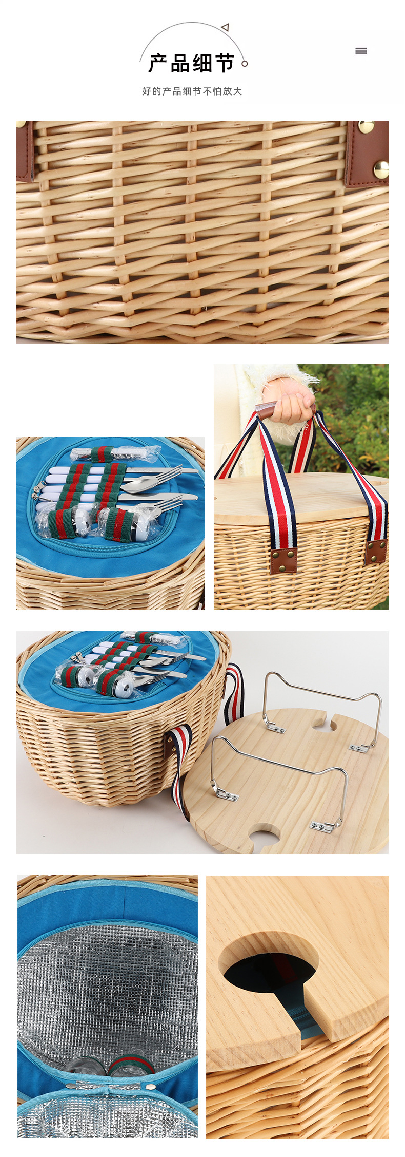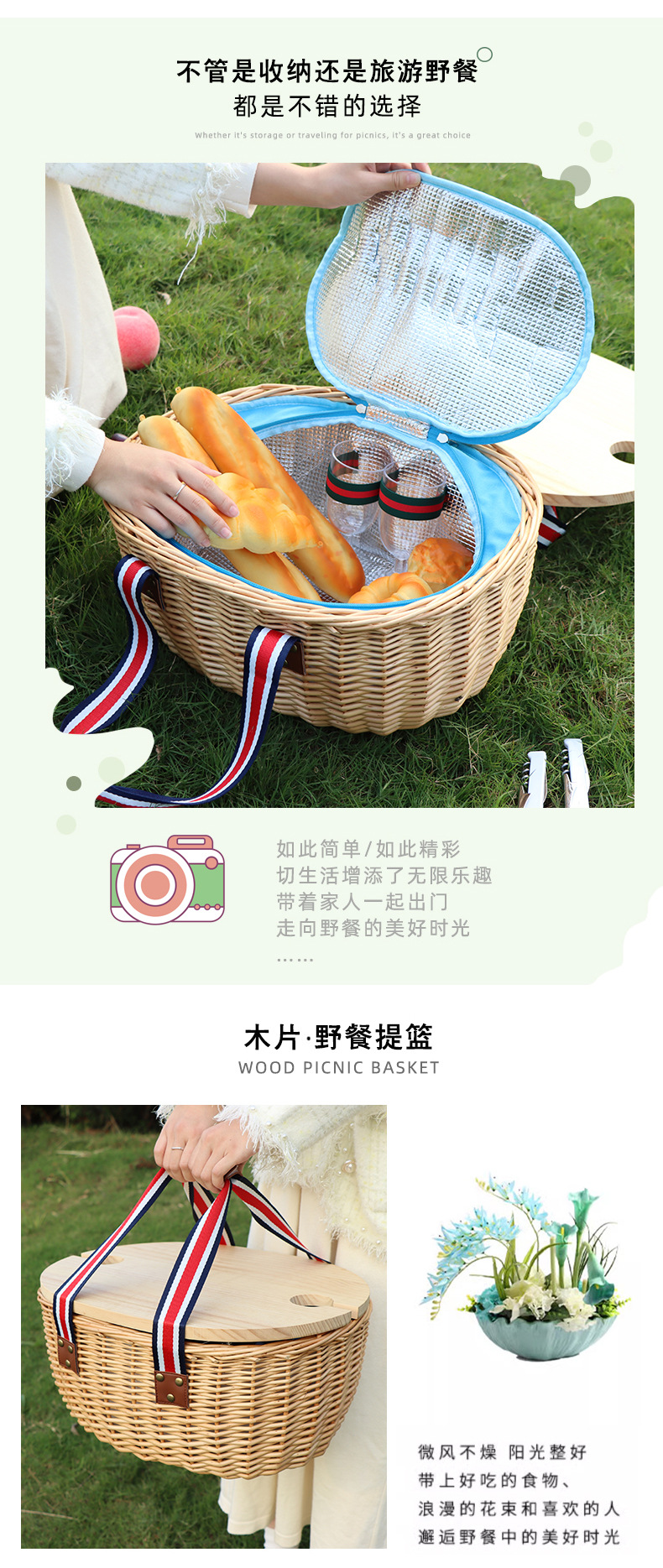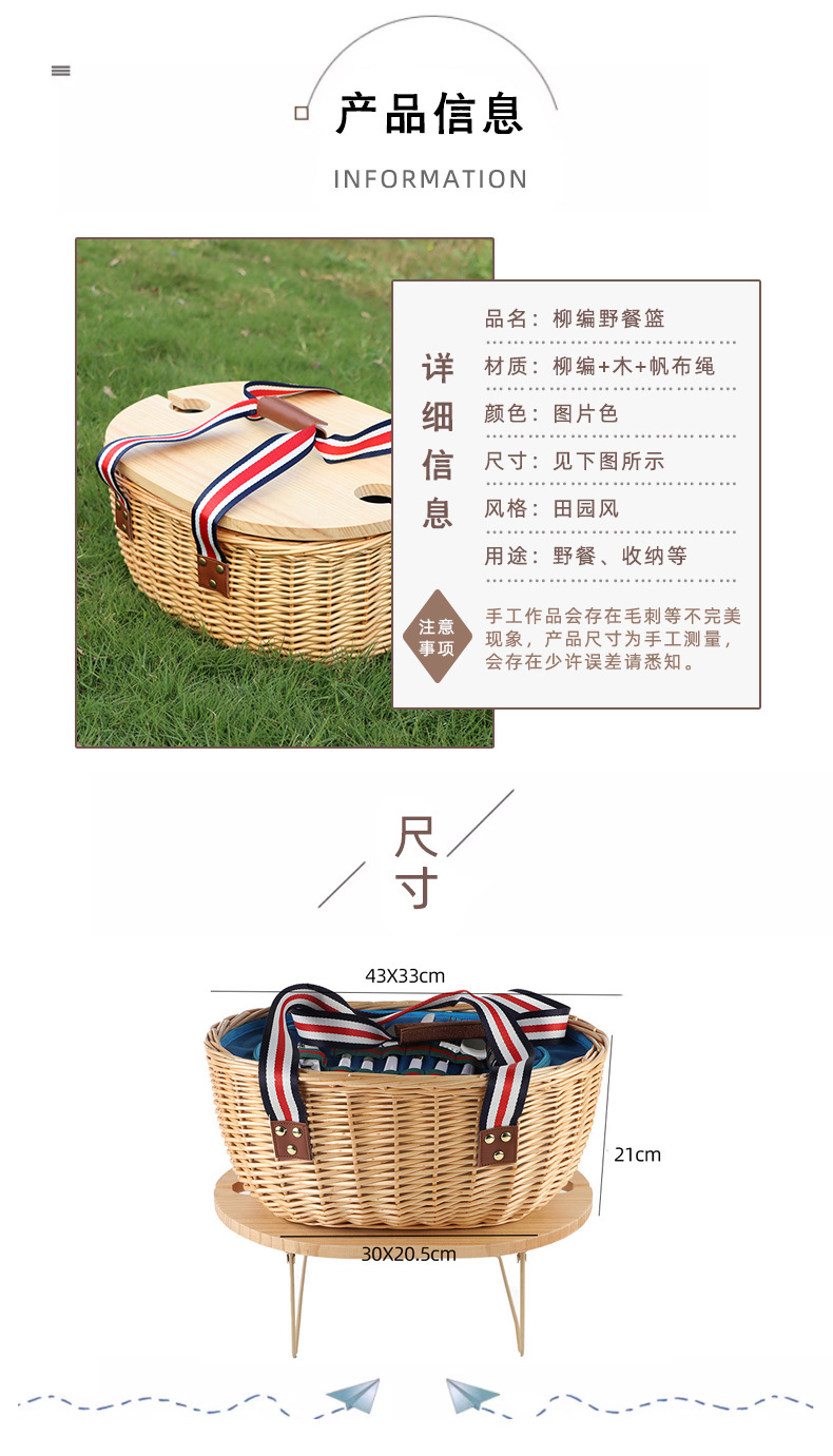 | Colores | Cesta de comedor de sauce cubierta de madera 43*33*20CM,Alfombrilla de picnic roja y blanca |