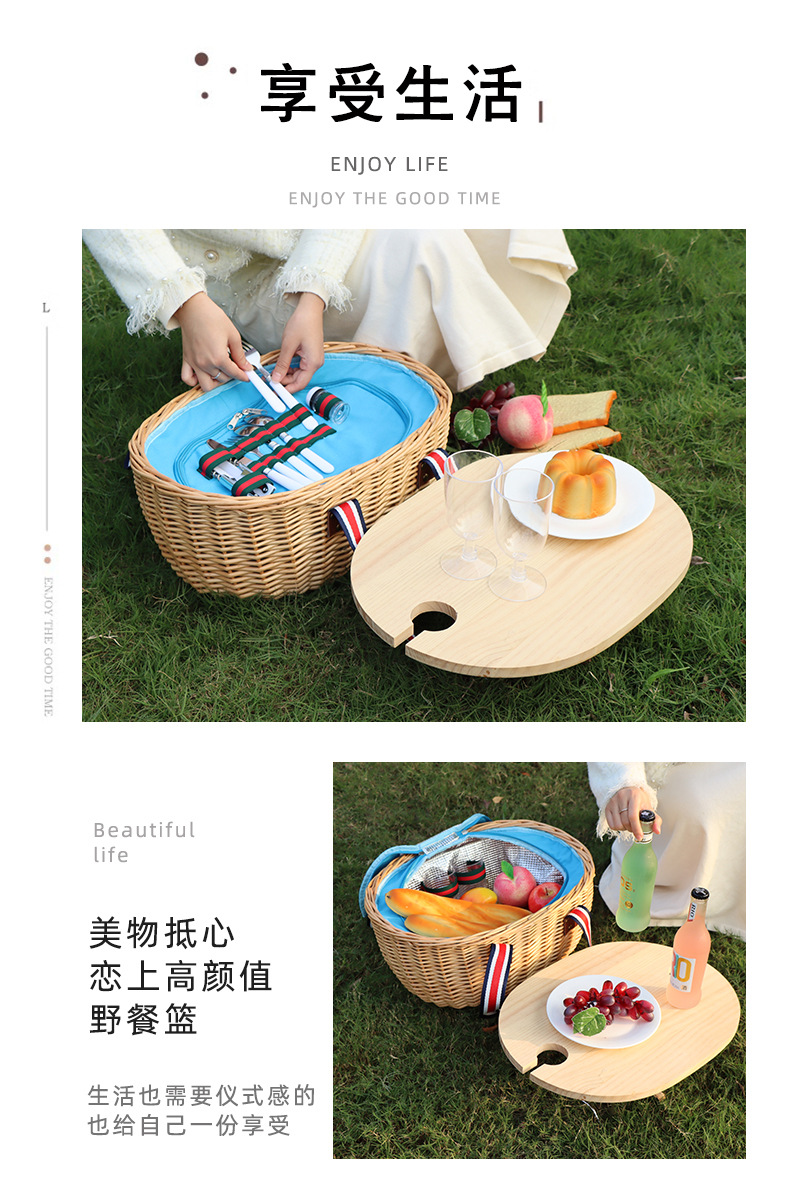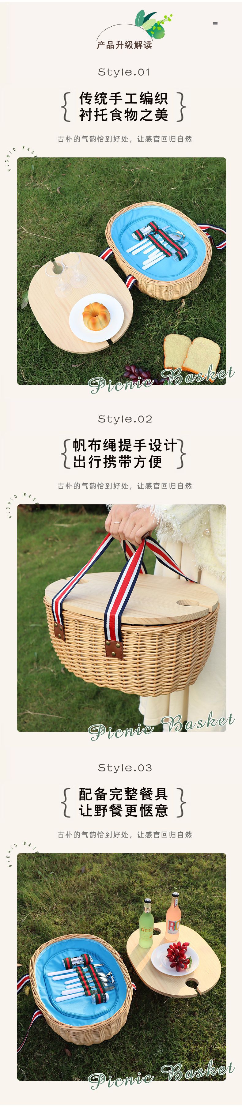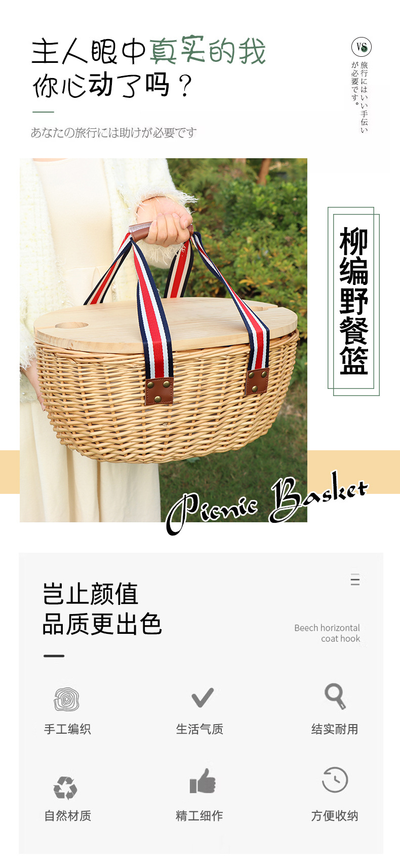 | Colores | Cesta de comedor de sauce cubierta de madera 43*33*20CM,Alfombrilla de picnic roja y blanca |