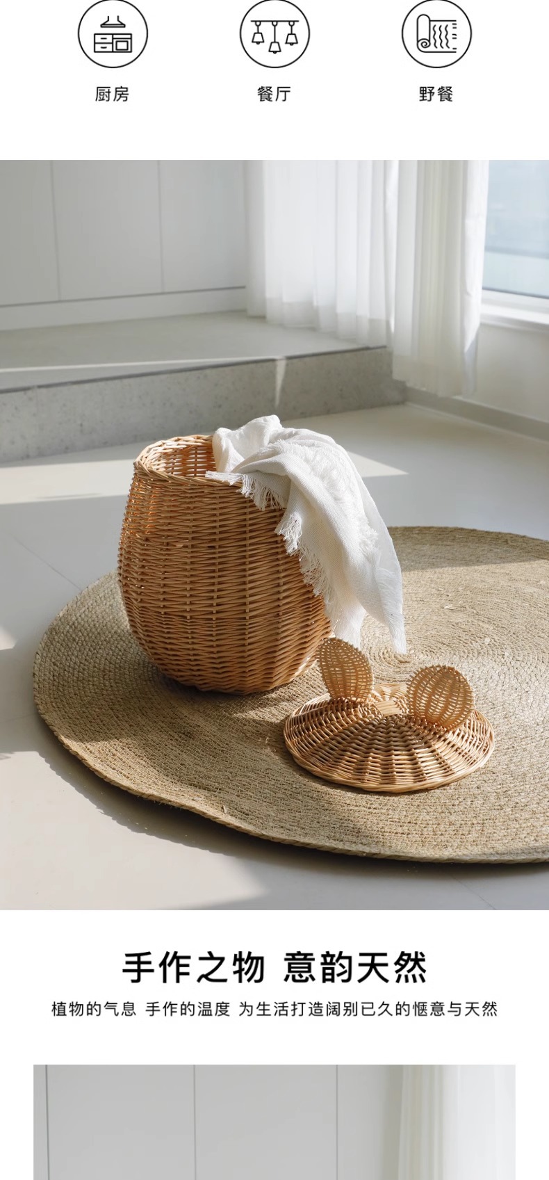 | Material | Tejido de sauce / tejido de paja |