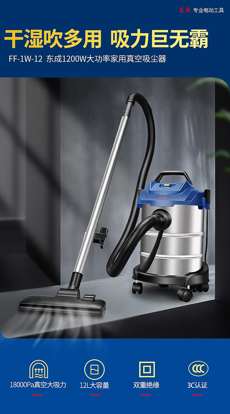 Dongcheng aspirador aspirador vertical de alta potencia aspirador de vacío seco y húmedo aspirador de agua doméstico tipo barril seco