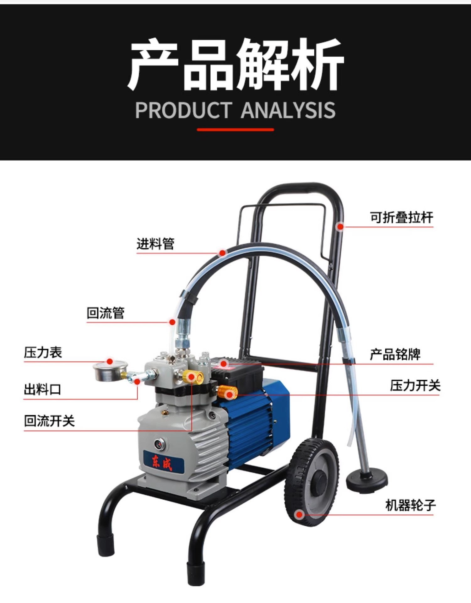 máquina de pulverización sin gas de alta presión de Dongcheng alta potencia pintura de pintura pintura de látex pintura de pared interior y exterior máquina de pulverización equipo de pistola de pulverización