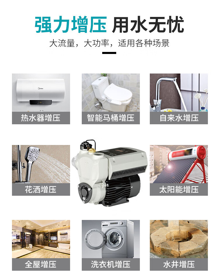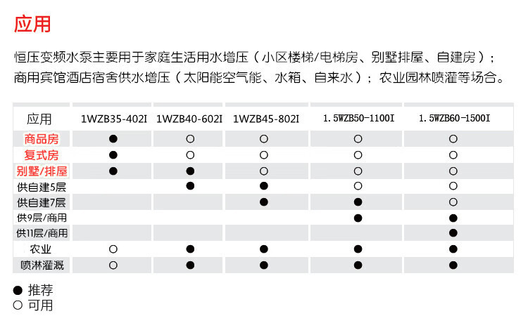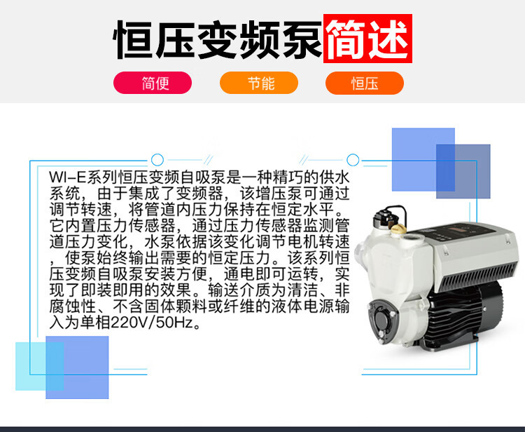 | Especificaciones | 1WZB35-402I [bomba de frecuencia variable de presión constante de 400W],1WZB40-601I [bomba de frecuencia variable de presión constante de 600W],1WZB45-802I [bomba de frecuencia variable de presión constante de 800W],1.5WZB60-1500I |