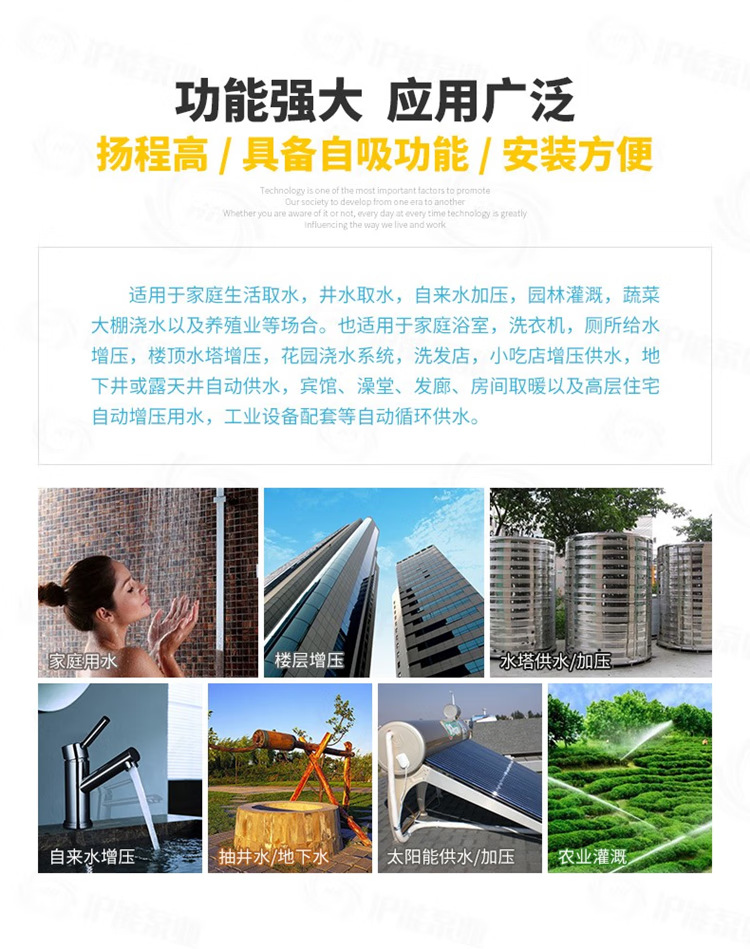 | Especificaciones | RJm60 [bomba autocebante de 128W],RJm60 [bomba autocebante de 200W],RJm60 [bomba autocebante de 300W],RJm60 [bomba autocebante de 400W],RJm70 [bomba autocebante 600W],RJm80 [bomba autocebante 800W],JLm90 [bomba autocebante de 1100W],JLm90 [bomba autocebante de 1500W] |