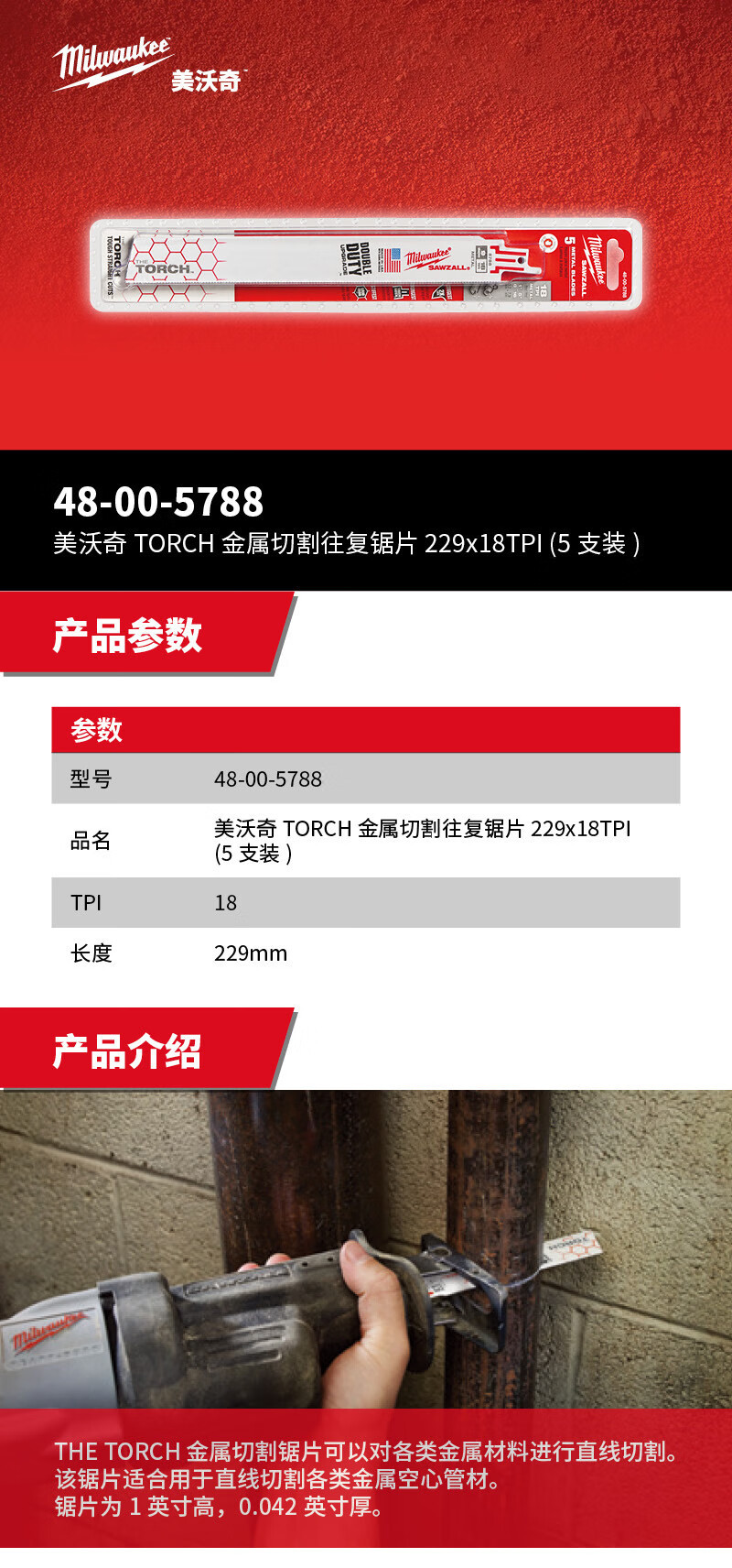 Mivochi Mivochi 48-00-5788 TORCH hoja de sierra recíproca de corte de metal 229x18TPI (5 piezas)