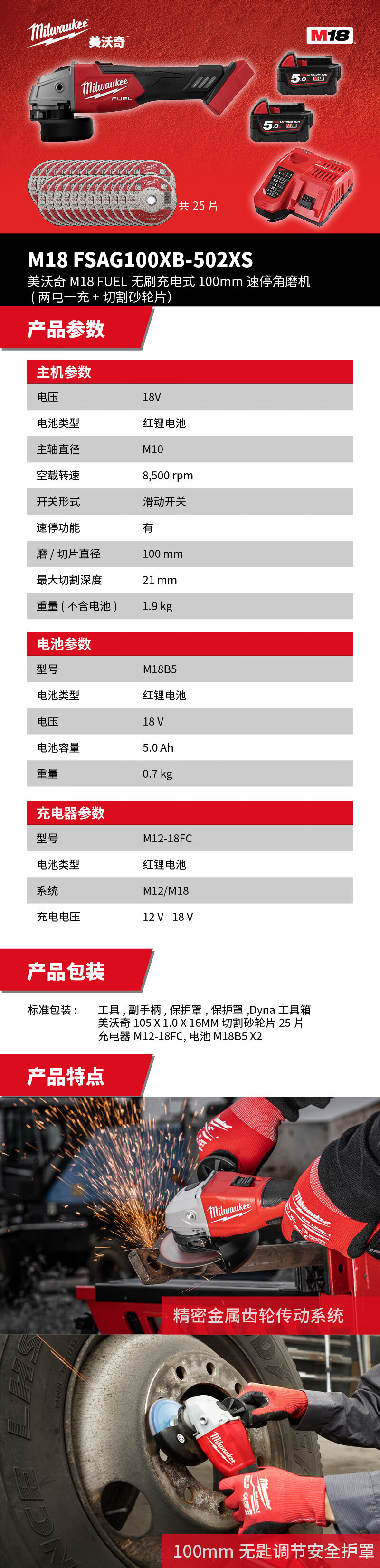 Miwachi Miwachi M18 FSAG100XB - 502XS M18 FUEL 100mm de parada rápida sin escobillas