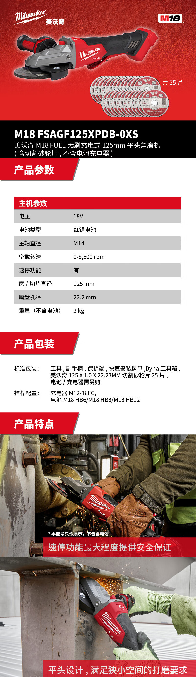 Miwachi Miwachi M18 FSAGF125XPDB - 0XS M18 FUEL sin escobillas recargable 125mm plano