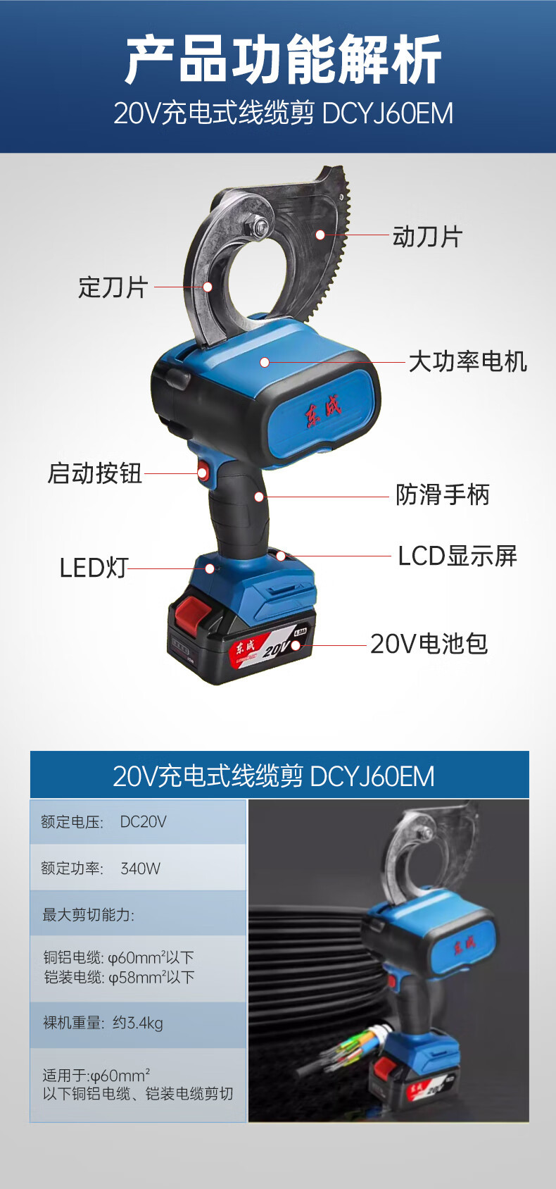 Dongcheng DCYJ55 tijeras de cable recargables hidráulicas de 20V tijeras de cable de litio cortadores de cable de cobre y aluminio cortadores de cable