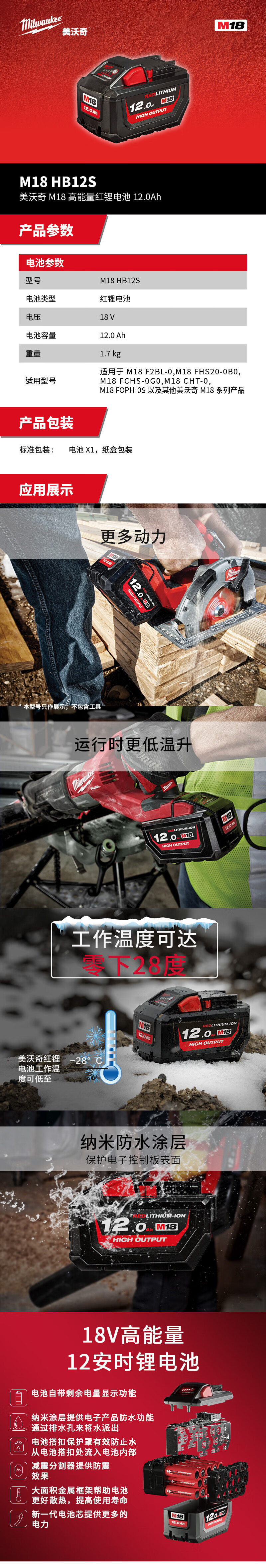 Batería de litio rojo de alta energía M18 HB12S M18 12.0Ah