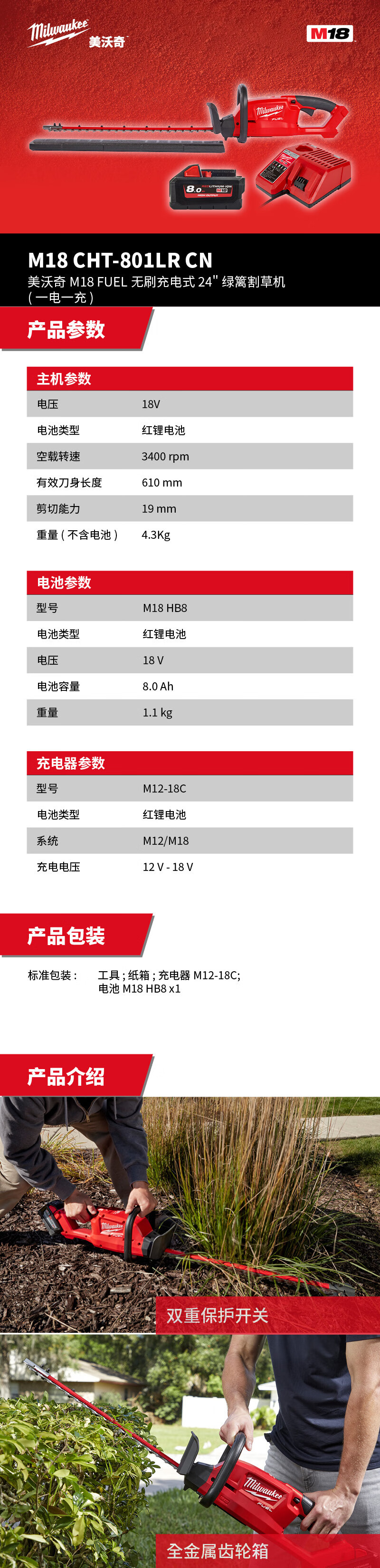 Miwachi Miwachi M18 CHT-801LR CN FUEL cargado sin escobillas 24 máquina de setos (una electricidad