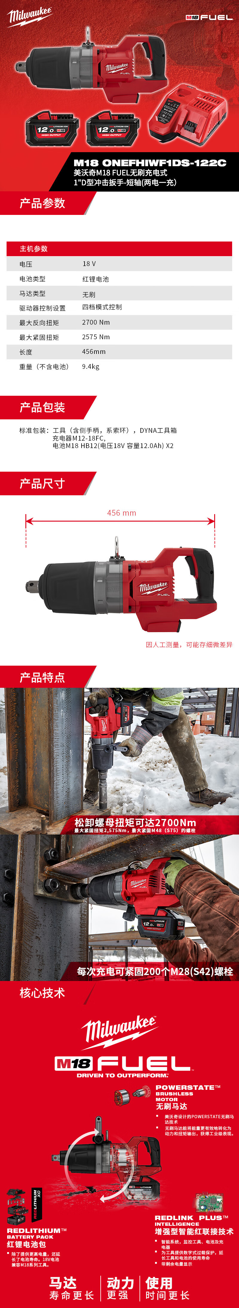 Miwachi Miwachi M18 ONEFHIWF1DS - 122C Llave de impacto de combustible sin escobillas tipo 1D