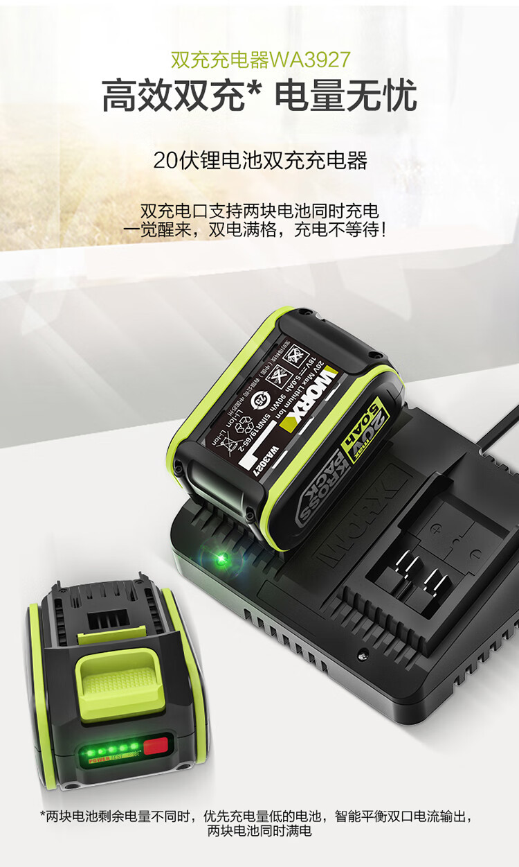 Cargador de batería de litio de 20V WA3924 multicompartido WA3924 [20V 2A carga rápida]