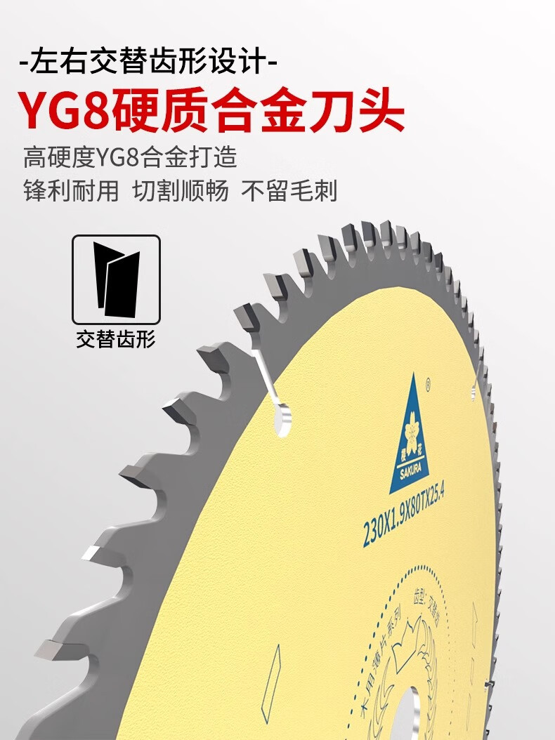 | Especificaciones | 105x1.5x30Tx20交替齿【4英寸】,105x1.5x32Tx20埋入齿【4英寸】,105x1.5x40Tx20交替齿【4英寸】,180x1.6x40Tx20薄片【7英寸】,180x1.6x40Tx25.4薄片【7英寸】,180x1.6x50Tx20薄片【7英寸】,180x1.6x50Tx25.4薄片【7英寸】,180x1.6x60Tx20薄片【7英寸】,180x1.6x60Tx25.4薄片【7英寸】,180x1.6x80Tx20薄片【7英寸】,180x1.6x80Tx25.4薄片【7英寸】,200x1.7x40Tx25.4薄片【8英寸】,200x1.7x60Tx25.4薄片【8英寸】,200x1.7x80Tx25.4薄片【8英寸】,200x1.7x100Tx25.4薄片【8英寸】,230x1.9x40Tx25.4薄片【9英寸】,230x1.9x60Tx25.4薄片【9英寸】,230x1.9x80Tx25.4薄片【9英寸】,230x1.9x100Tx25.4薄片【9英寸】,254x2.1x40Tx25.4薄片【10英寸】,254x2.1x60Tx25.4薄片【10英寸】,254x2.1x80Tx25.4薄片【10英寸】,254x2.1x100Tx25.4薄片【10英寸】,254x2.1x120Tx25.4薄片【10英寸】,300x2.3x40Tx25.4薄片【12英寸】,300x2.3x40Tx30薄片【12英寸】,300x2.3x60Tx25.4薄片【12英寸】,300x2.3x60Tx30薄片【12英寸】,300x2.3x80Tx25.4薄片【12英寸】,300x2.3x80Tx30薄片【12英寸】,300x2.3x100Tx25.4薄片【12英寸】,300x2.3x100Tx30薄片【12英寸】,300x2.3x120Tx25.4薄片【12英寸】,300x2.3x120Tx30薄片【12英寸】 |
