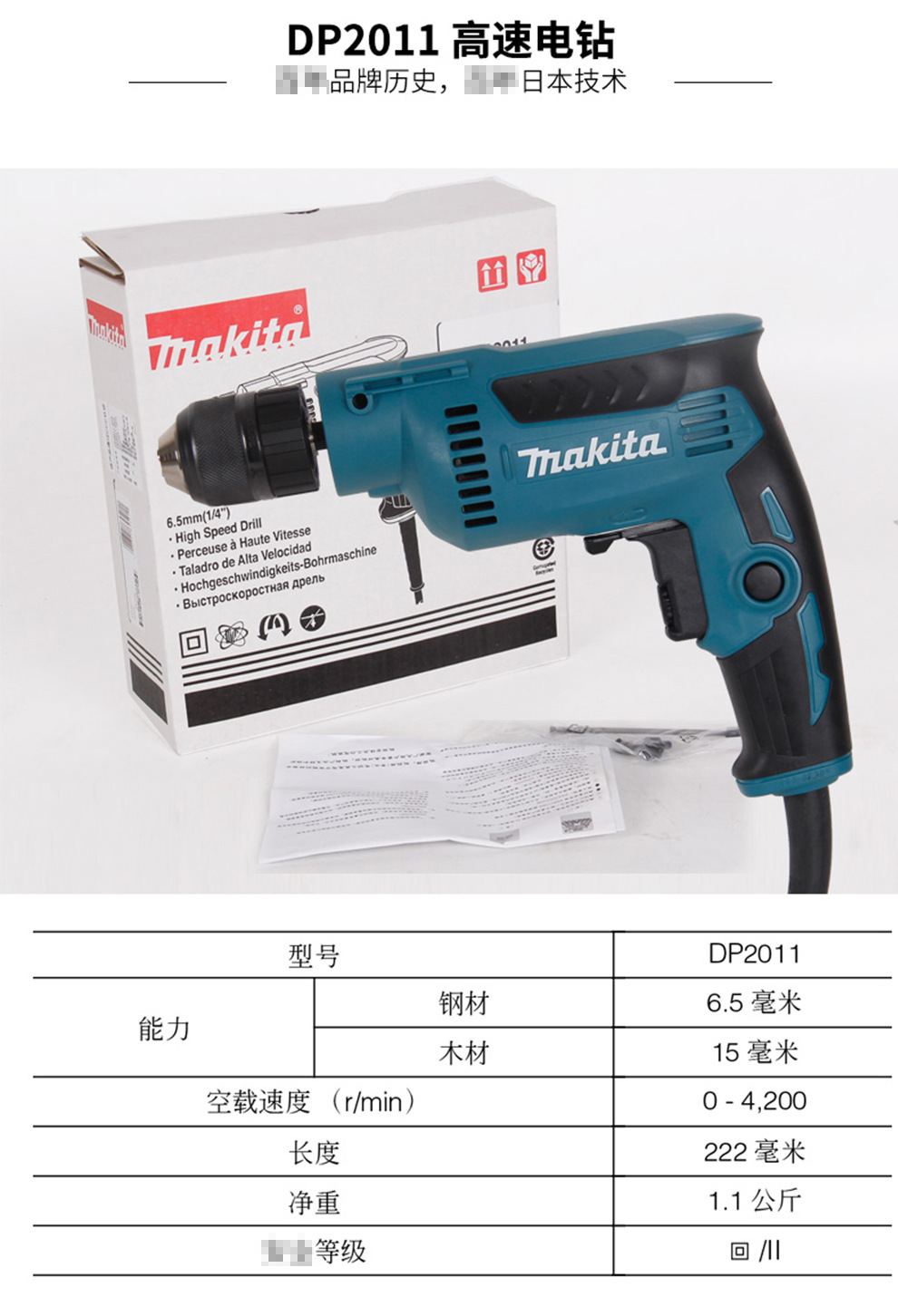 | Modelo | DP2010 taladro eléctrico de alta velocidad paquete de abrazadera universal 1, DP2010 taladro eléctrico de alta velocidad paquete de abrazadera universal 2, DP2010 taladro eléctrico de alta velocidad paquete de abrazadera universal 3, DP2011 taladro eléctrico de alta velocidad paquete de abrazadera de autobloqueo 1, DP2011 taladro eléctrico de alta velocidad paquete de abrazadera de autobloqueo 2, DP2011 taladro eléctrico de alta velocidad paquete de abrazadera de autobloqueo 3, DP2010 taladro eléctrico de alta velocidad (abrazadera universal 370W), DP2011 taladro eléctrico de alta velocidad (abrazadera de autobloqueo 370W |