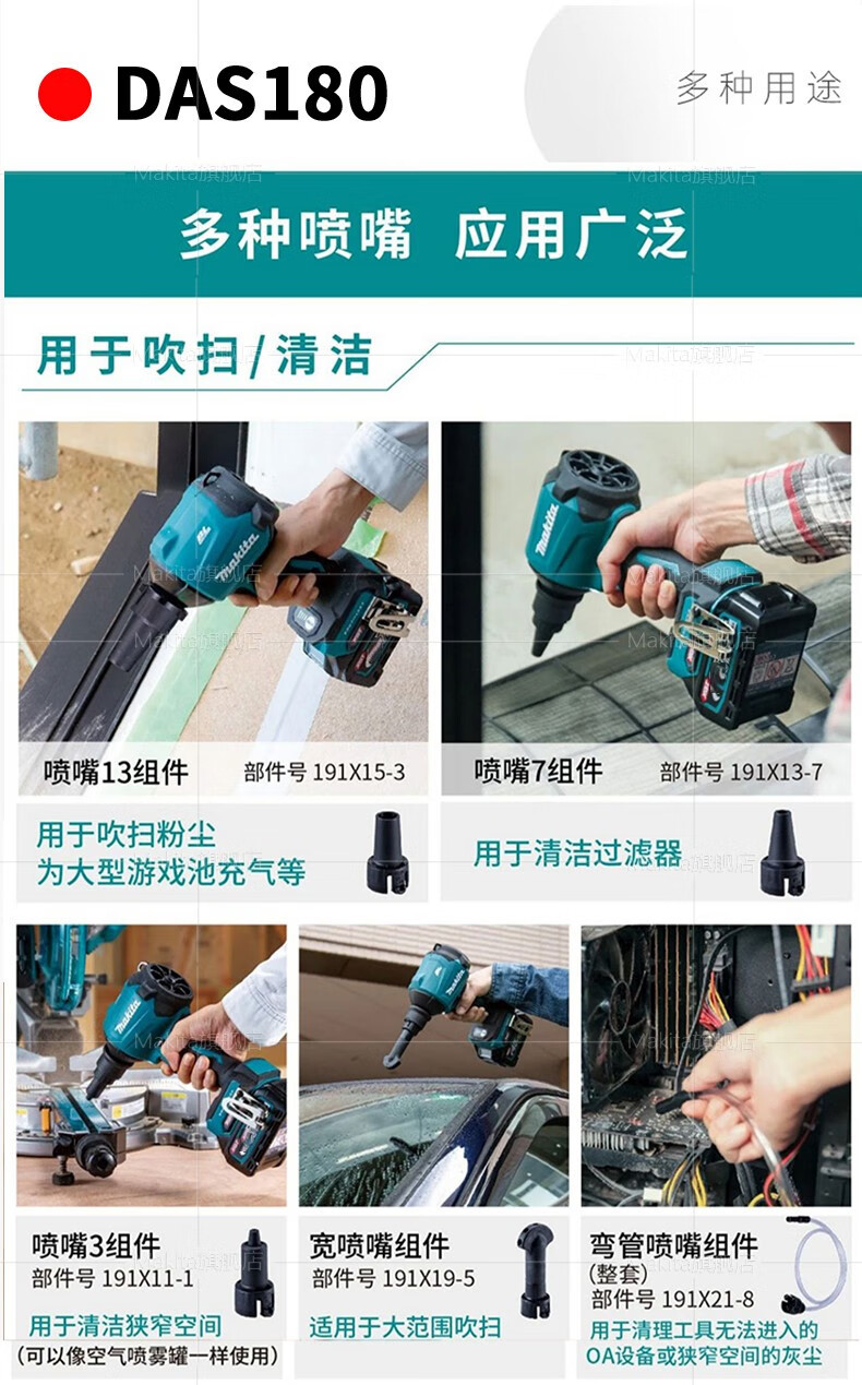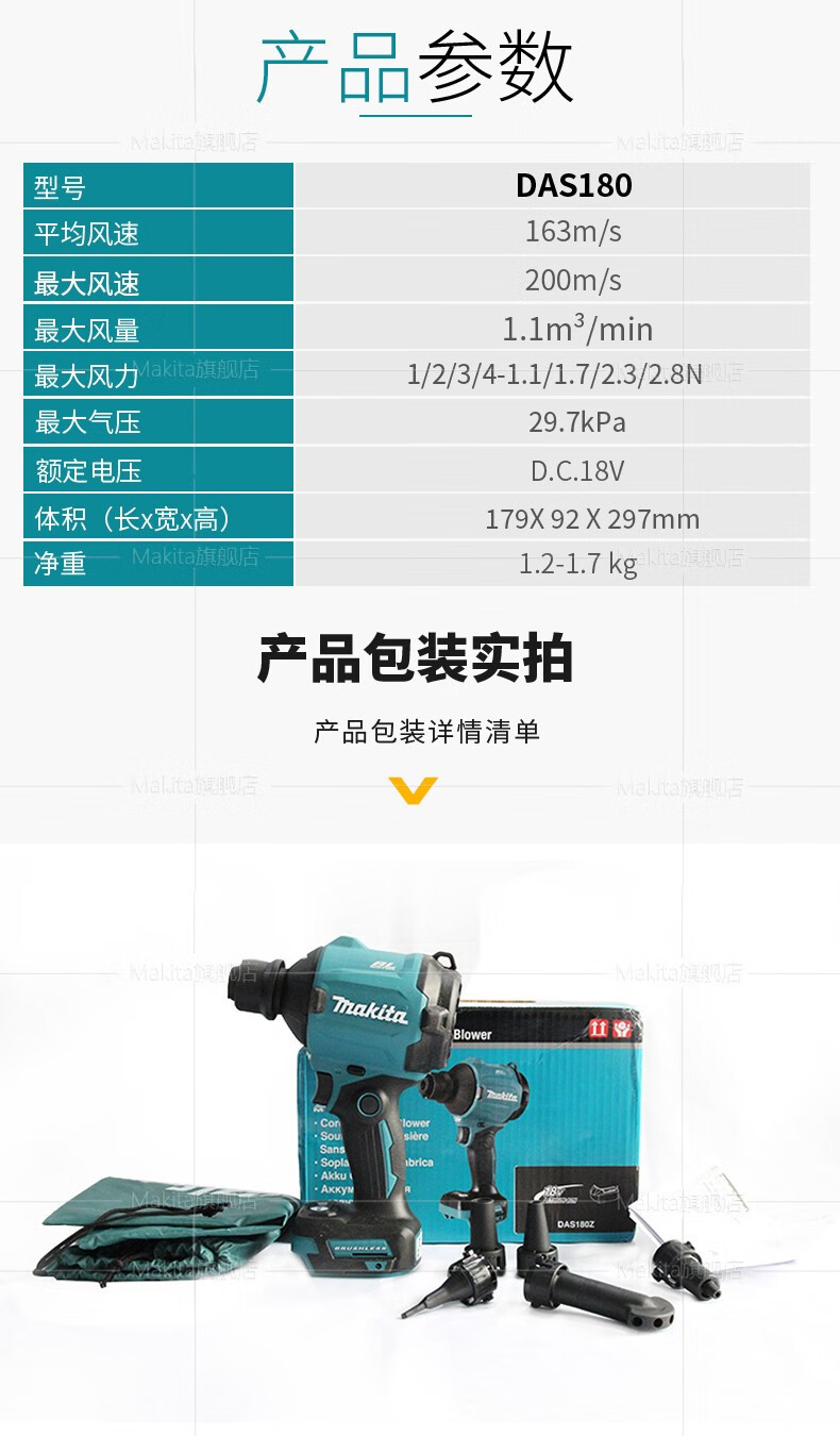 | Especificaciones | El das180 desnudo no contiene cargador de batería, das180 Air Qi ang carga rápida de una sola carga 3.0ah, das180 Air Qi carga rápida de una sola carga 4.0ah, das180 Air Qi carga rápida de una sola carga 5.0ah, das180 Air Qi carga rápida de una sola carga 6.0ah, das180 Air Qi carga rápida de dos cargas 3.0ah, das180 Air Qi carga rápida de Dos cargas 4.0ah, das180 Air Qi carga rápida de dos cargas 5.0ah, das180 Air Qi carga rápida de dos cargas 6.0ah |