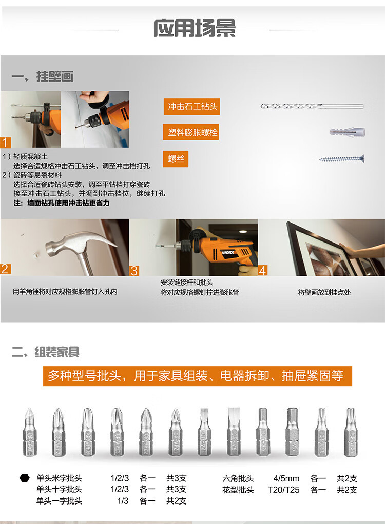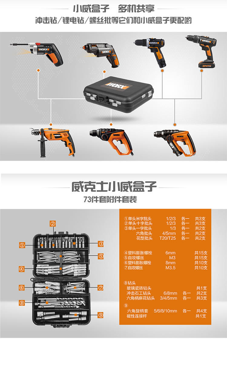 WEX WORX WA1149 conjunto de accesorios de herramientas eléctricas arco iris taladro de impacto taladro eléctrico