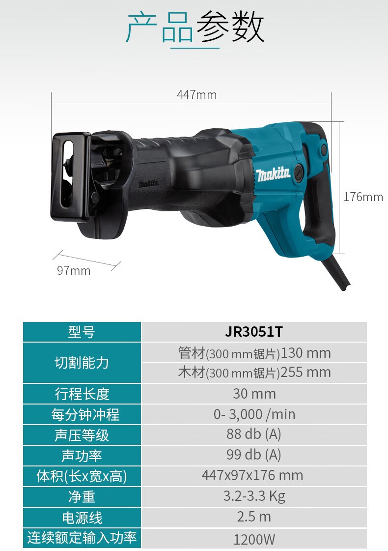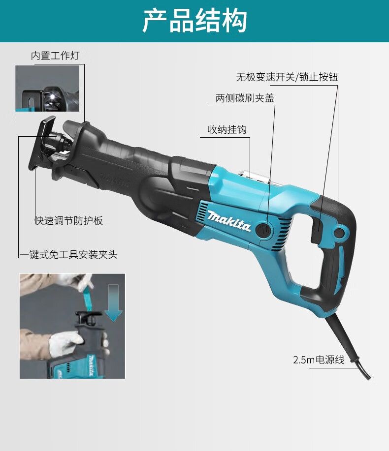 Sierra recíproca Makeda JR3051TK 1200W, Sierra recíproca Makeda JR3061T 1250W con lámpara