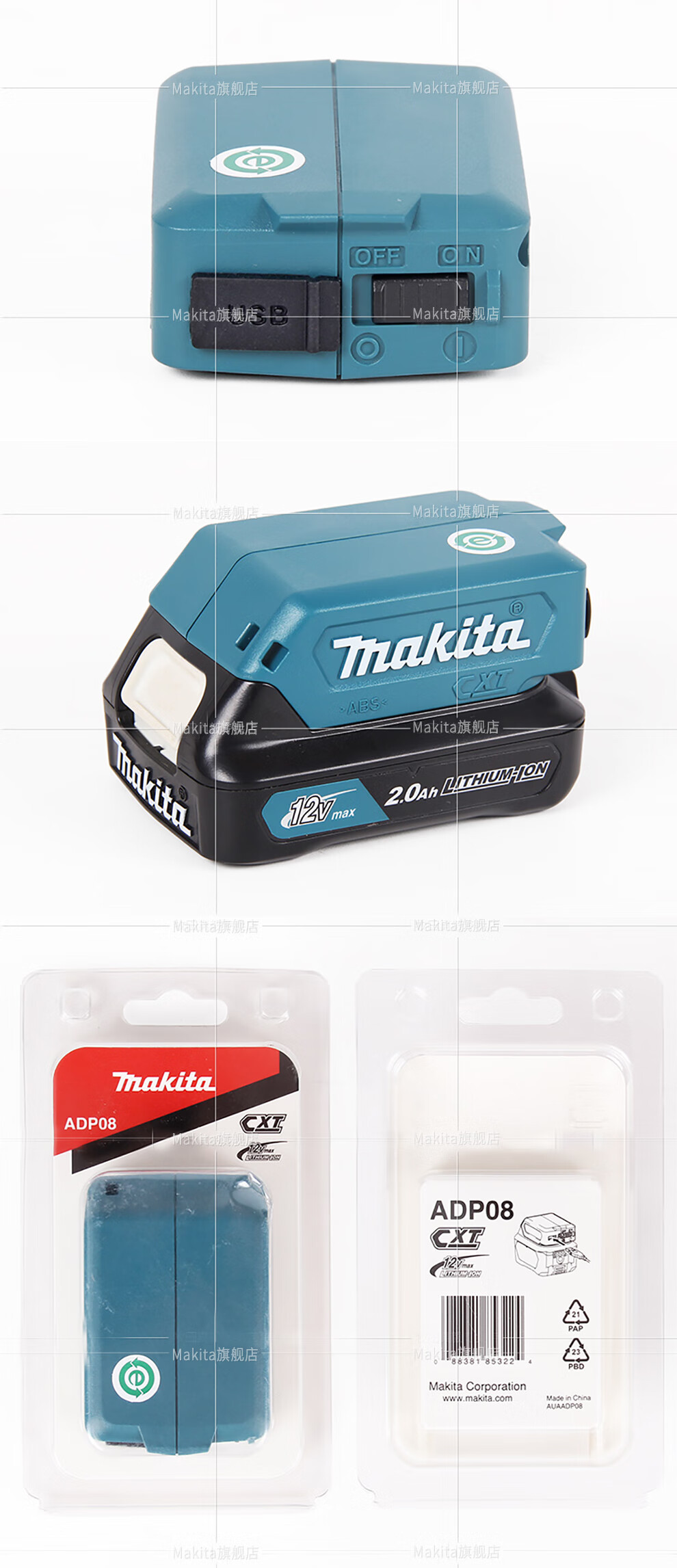 Makita pre-venta Makita 12V conector de carga de litio adaptador USB adaptador de cabeza ADP08