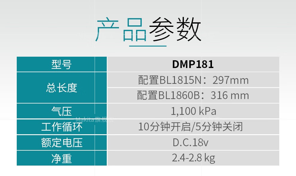 | Especificaciones | DMP181Z inflador de metal desnudo cargador de batería, DMP181Z inflador de carga una carga 3.0ah, DMP181Z inflador de carga una carga 4.0ah, DMP181Z inflador de carga una carga 5.0ah, DMP181Z inflador de carga una carga 6.0ah, DMP181Z inflador de carga dos cargas una carga 3.0ah, DMP181Z inflador de carga dos cargas una carga 4.0ah, DMP181Z inflador de carga dos cargas una carga 5.0ah, DMP181Z inflador de carga dos eléctricos y una carga 6.0ah |