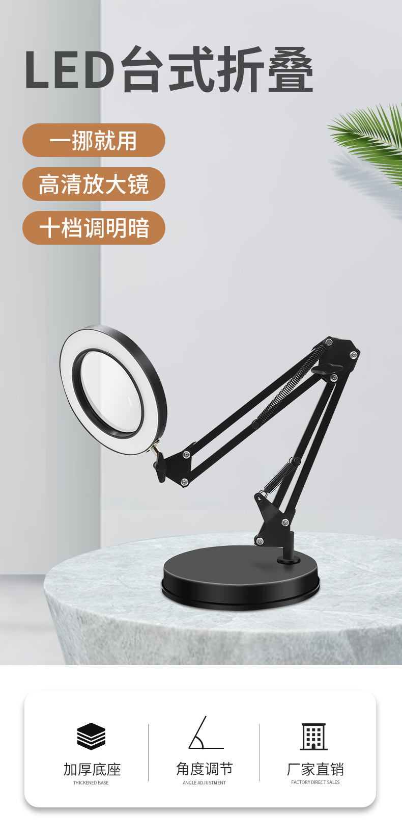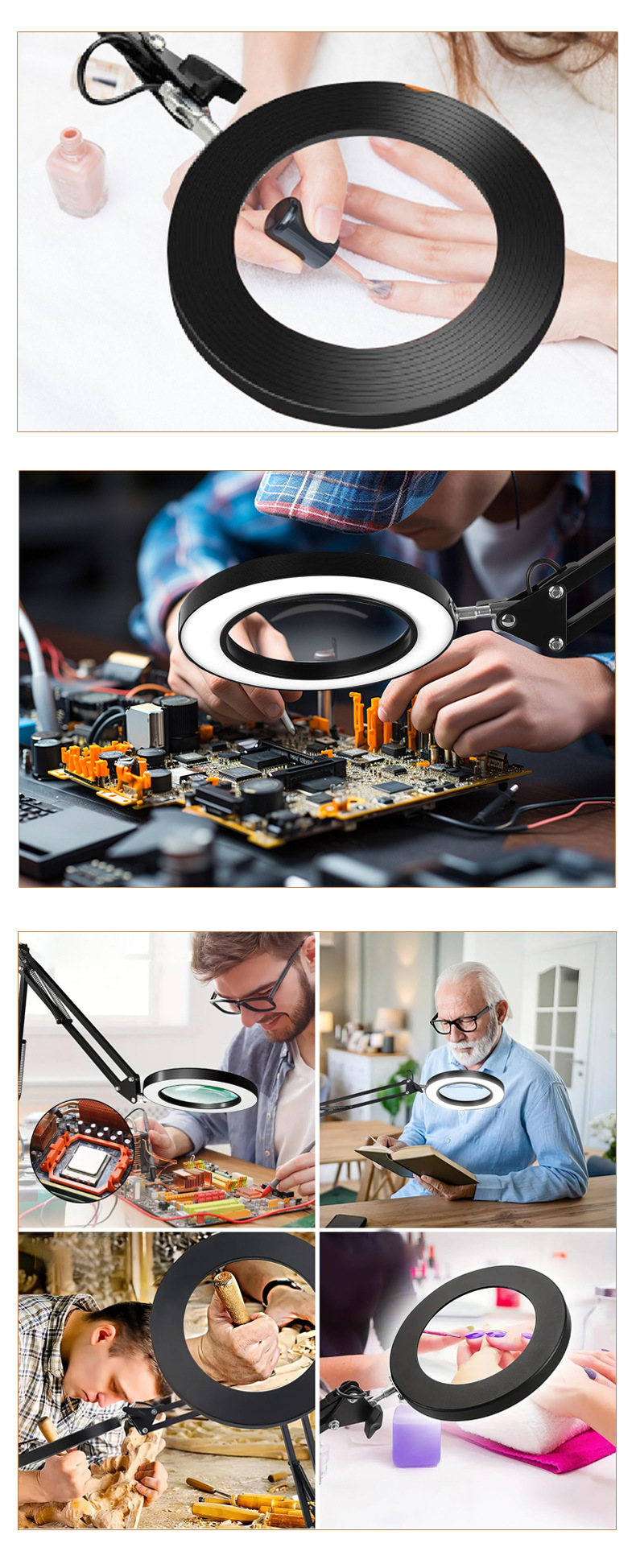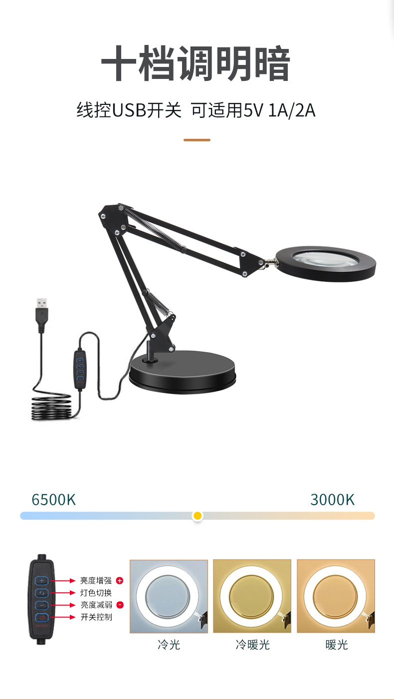 | Color | FD - 012 lámpara de mesa de lupa de disco negro, FD - 002 base cuadrada negra + lámpara de mesa de lupa (algodón perla), FD - 004 base cuadrada negra + lámpara de mesa de lupa + clip de base de hierro (algodón perla), FD - 006 base cuadrada negra + lámpara de mesa de lupa + clip de base de aluminio (algodón perla), FD - 008 clip de hierro de metal negro + lámpara de mesa de lupa (algodón perla), FD - 010 clip de aluminio de metal negro + lámpara de mesa de lupa (algodón perla) |