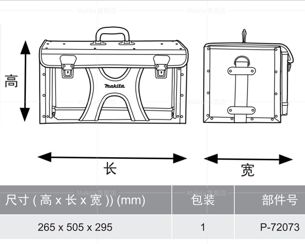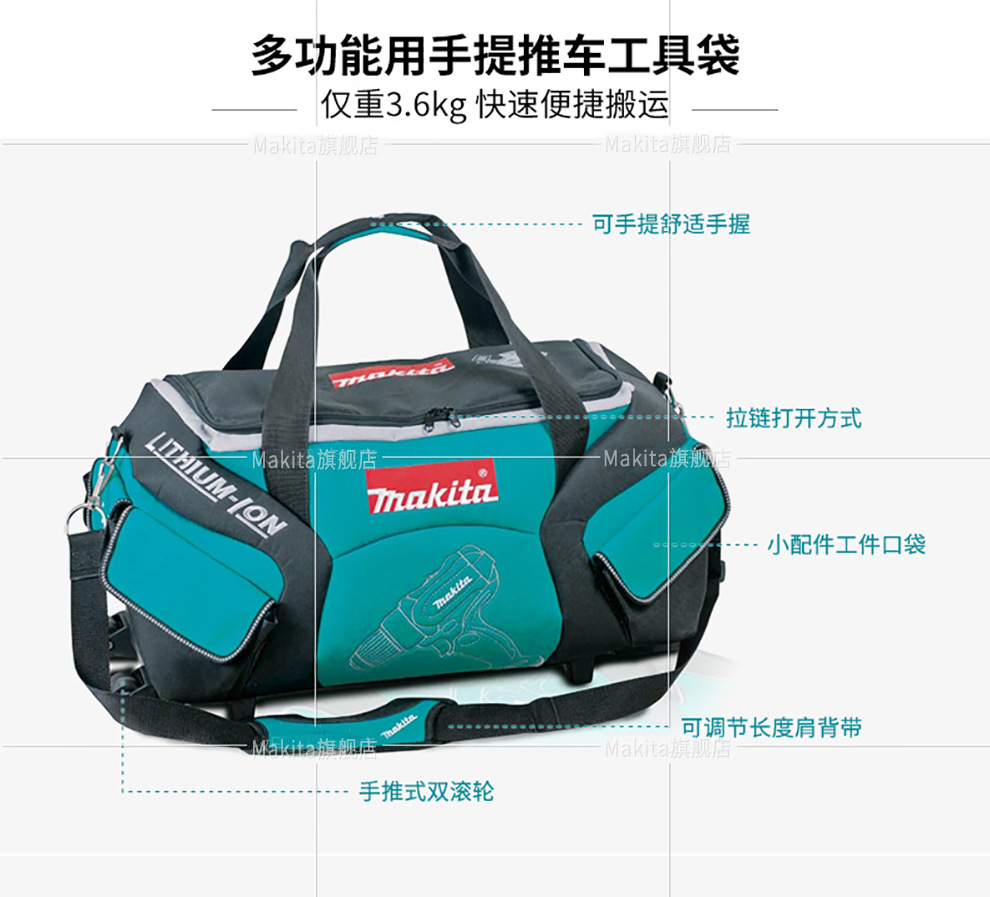 | Especificaciones y modelos | Kit de herramientas de牧田 520 bolsa de almacenamiento, bolsa de elevación de牧田 (portátil), caja de herramientas de mantenimiento eléctrico de牧田, kit de herramientas de牧田 350X220X270 y bolsa de herramientas de牧田 700X310X320 |