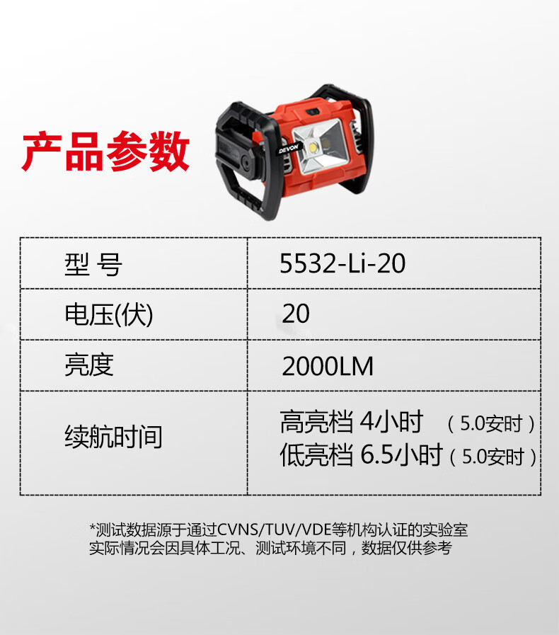 Da litio (Devon) 20V LED herramienta eléctrica portátil lámpara de sitio 5532 carga pan camping al aire libre