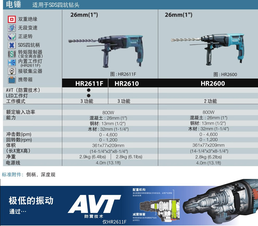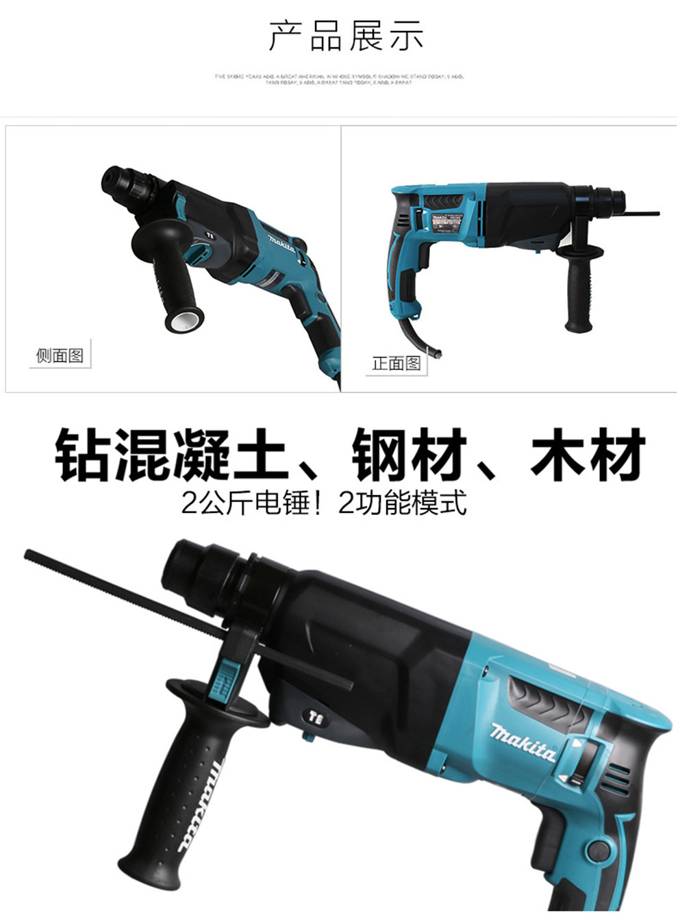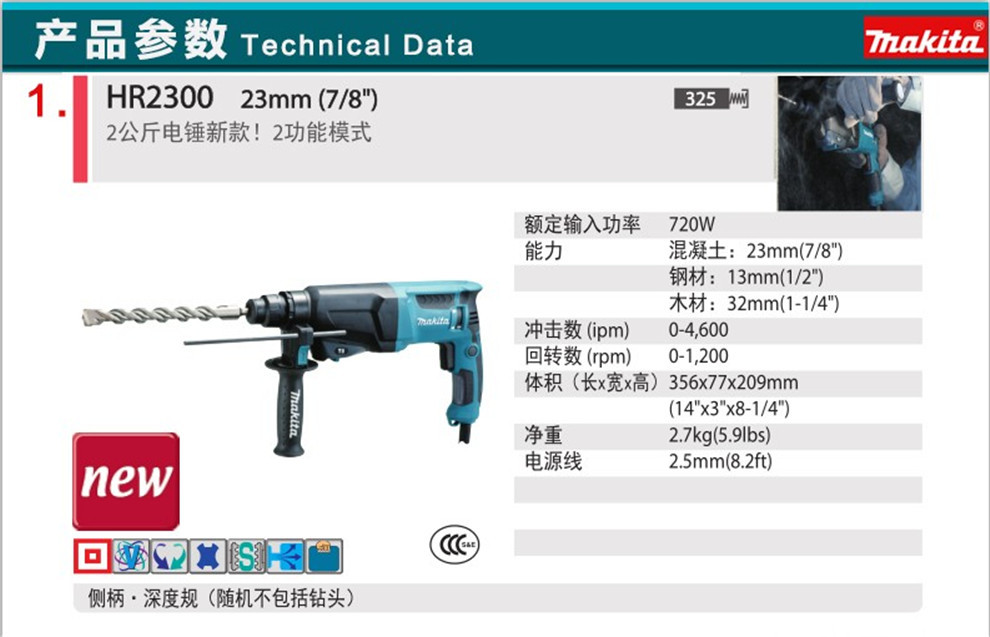Mu田 Mu田 cuatro坑 martillo eléctrico mango redondo doble propósito taladro de impacto ligero multifuncional hormigón perforación HR2300 eléctrica