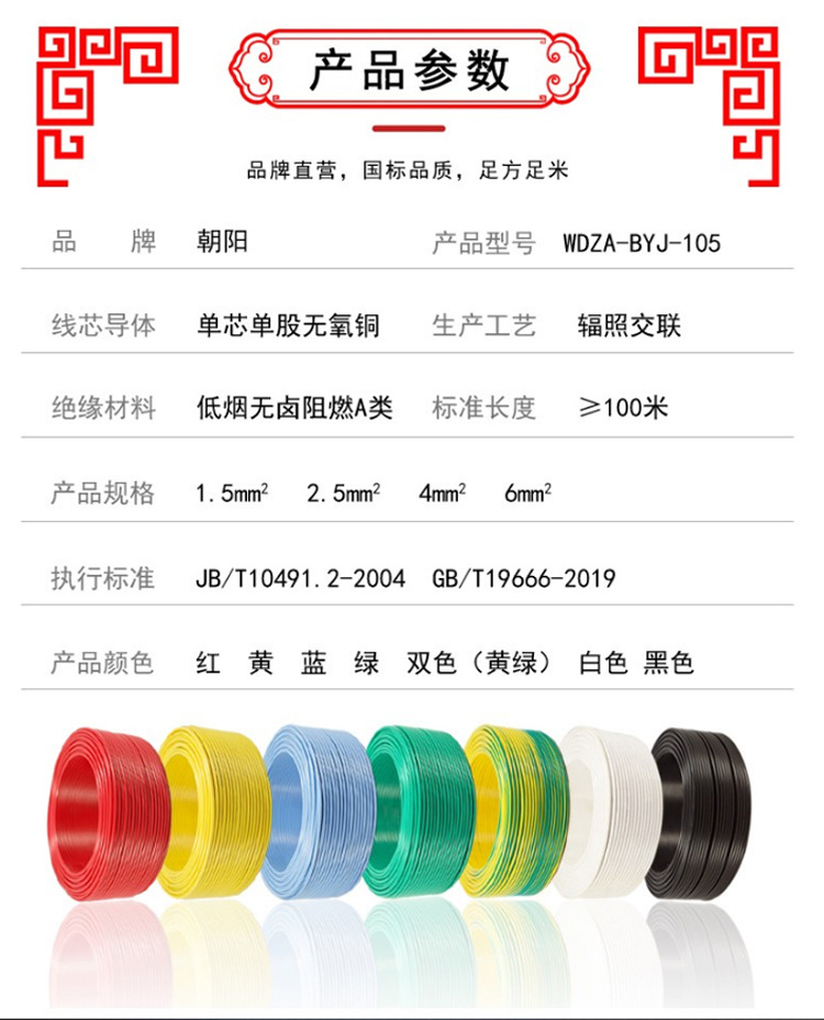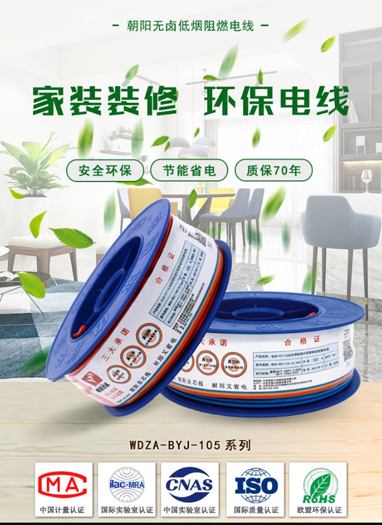 Chaoyang WDZA-BYJ - 105 bajo humo ignífugo clase A irradiación reticulada alambre verde amarillo 16 cuadrado 1