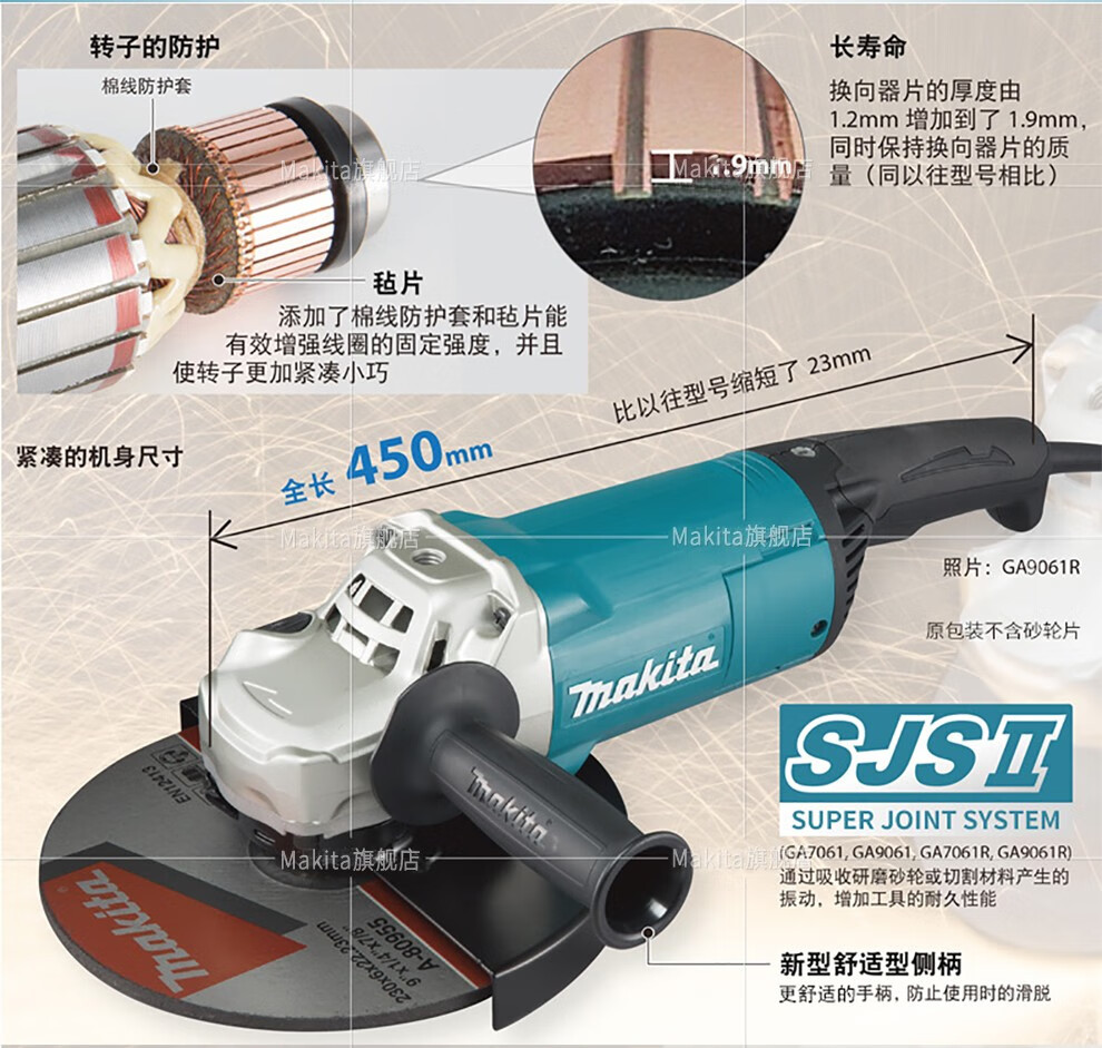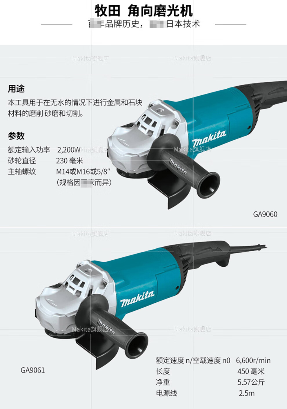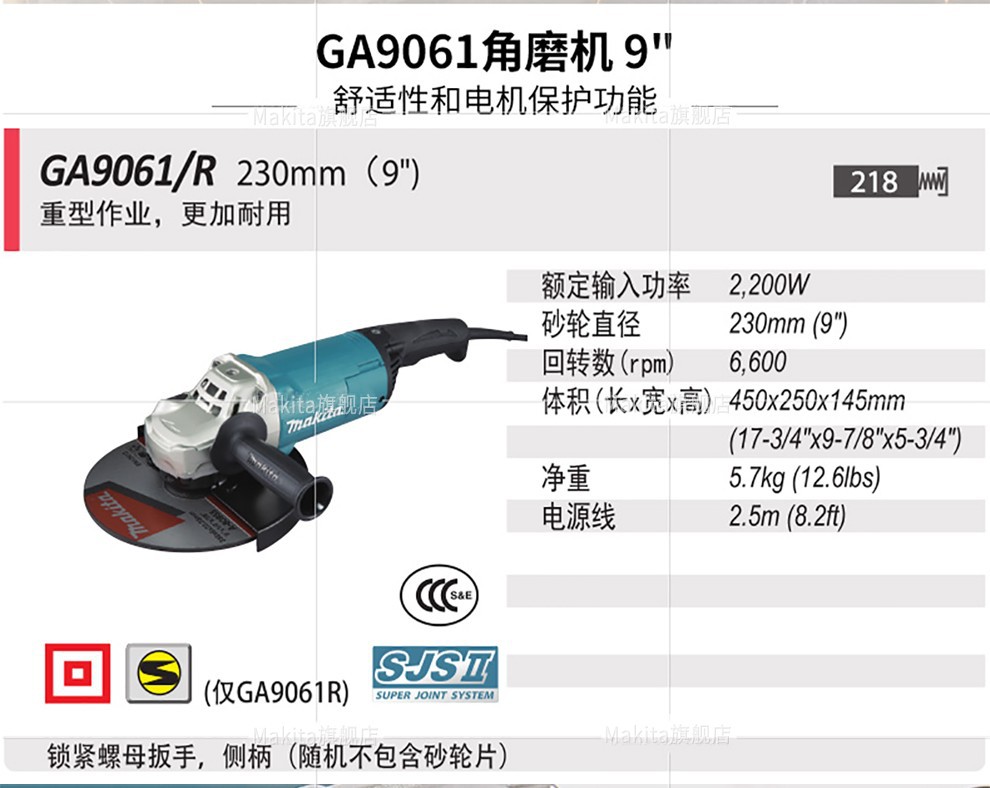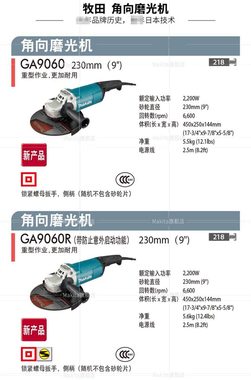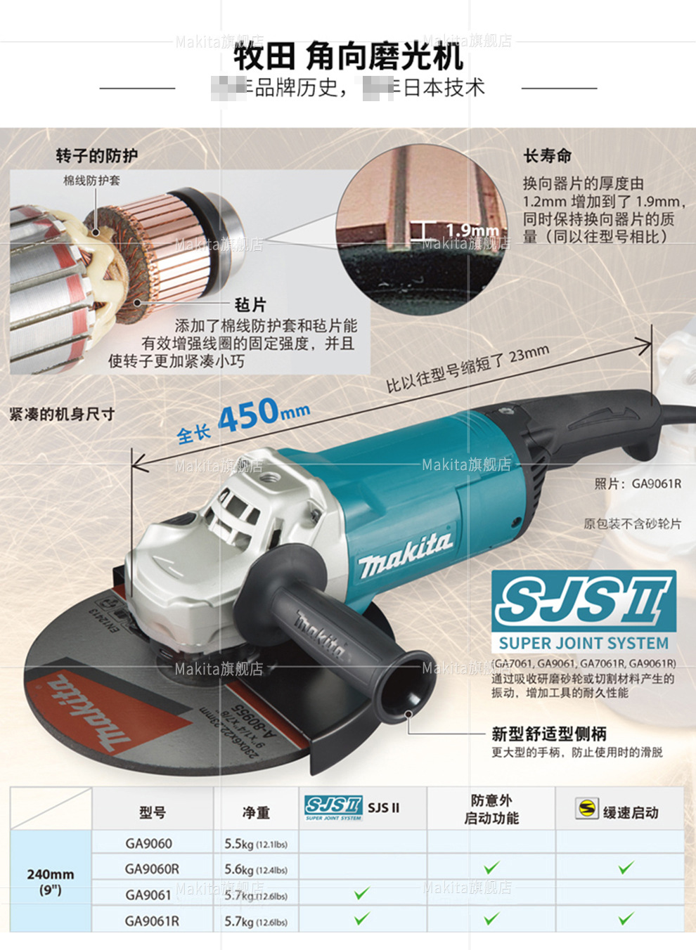Ga9020 de alta potencia 2200w230mm, ga9060r evita la función de arranque accidental, GA9061(230mm)2200W,GA9062(230mm)2200W