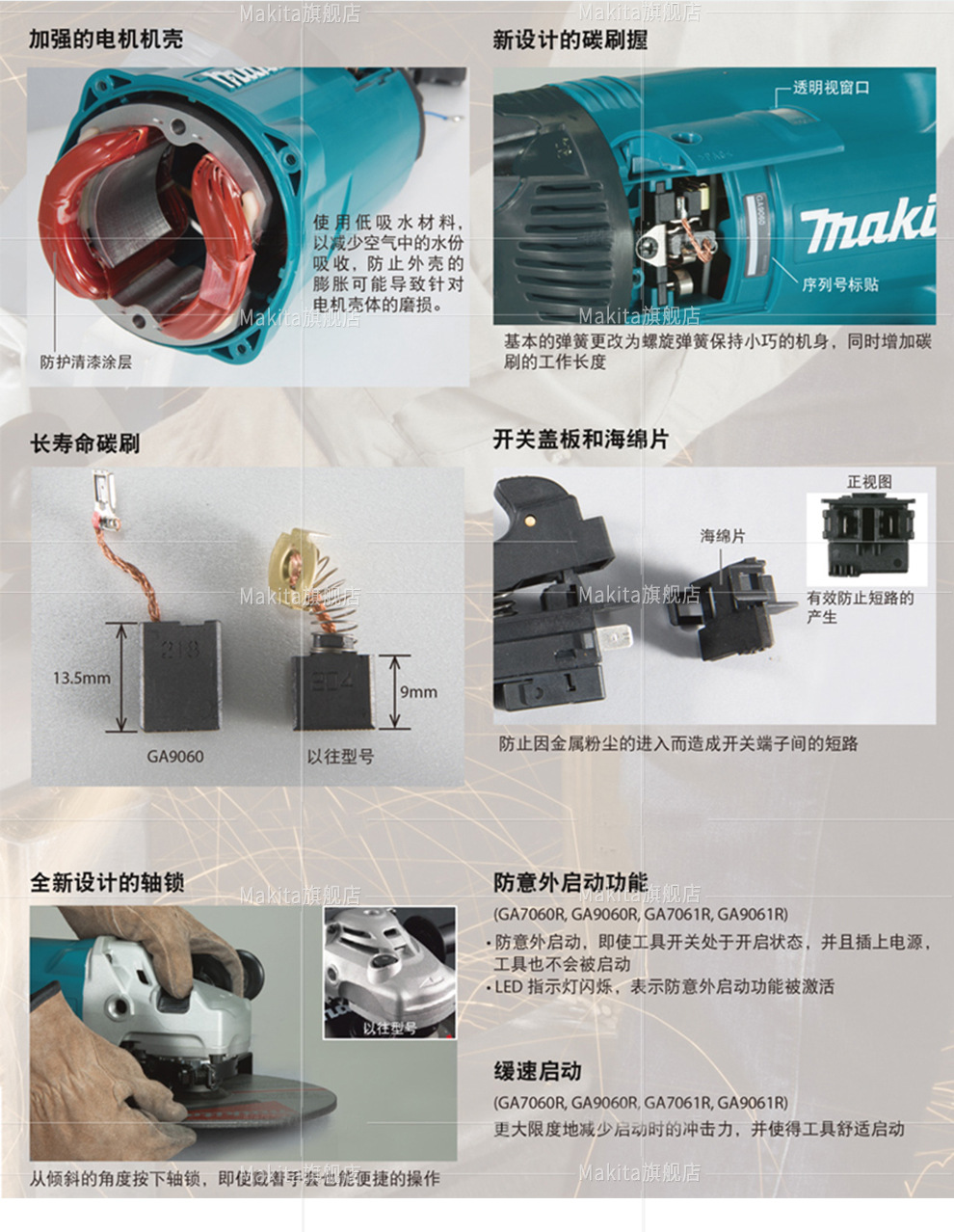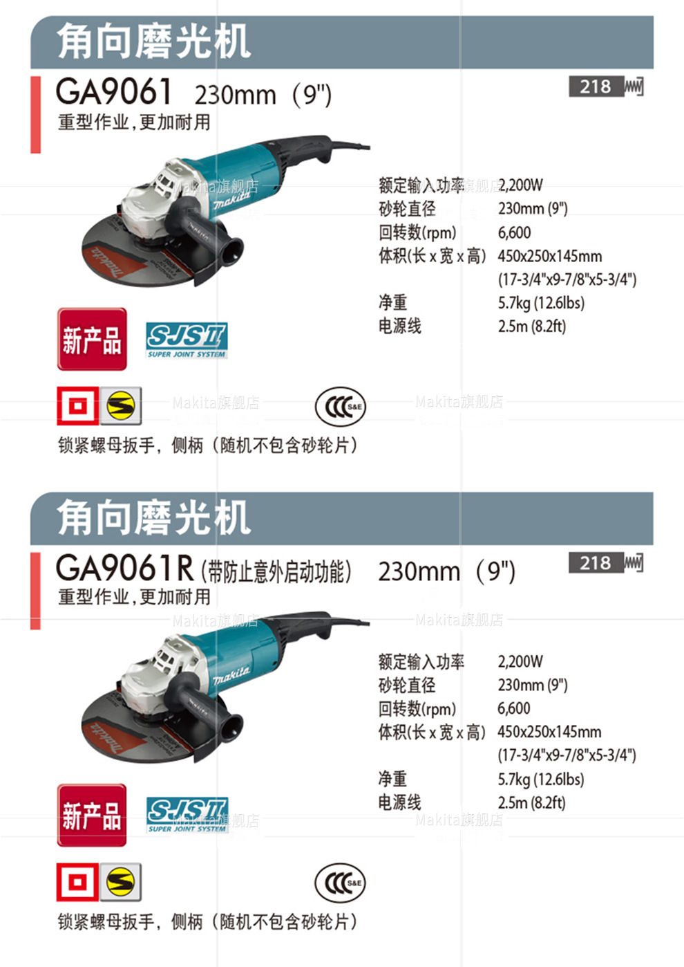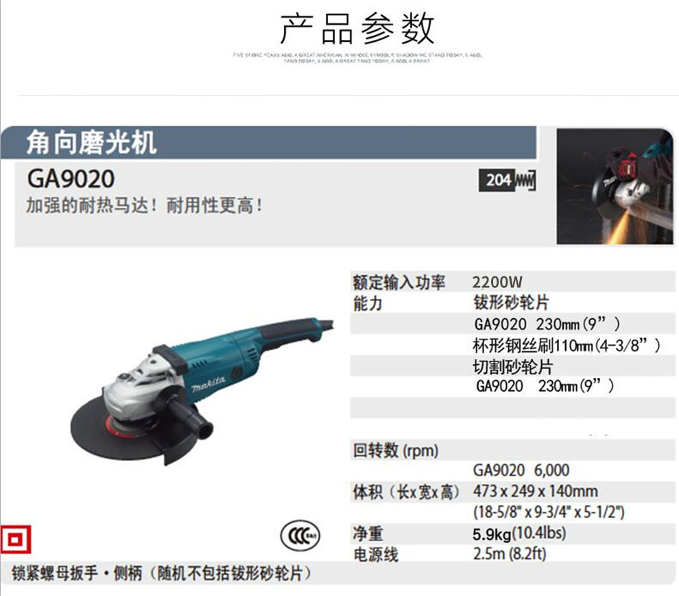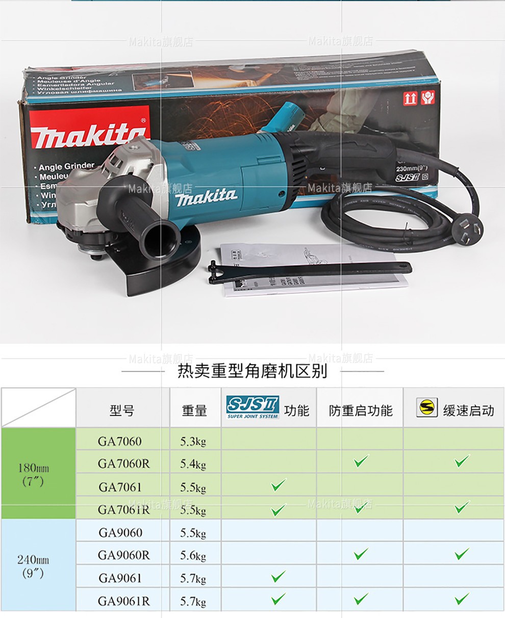 Ga9020 de alta potencia 2200w230mm, ga9060r evita la función de arranque accidental, GA9061(230mm)2200W,GA9062(230mm)2200W