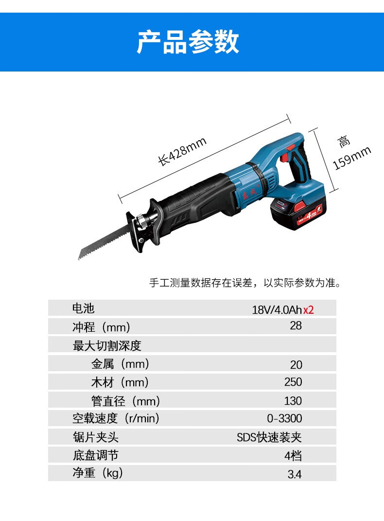 Sierra de alta velocidad Sierra de alta velocidad sin escobillas de cobre completo Sierra de una sola mano de batería de litio inalámbrica Sierra de cadena de batería de litio recargable