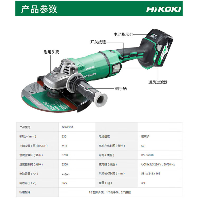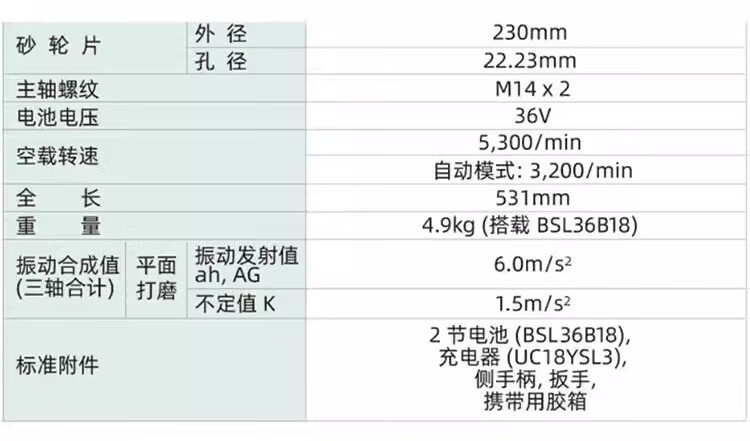 G3618DA 180mm diámetro de abrasiva metal desnudo, G3618DA 4.0Ah dos cargas eléctricas y un flash, G3623DA 230mm diámetro de abrasiva metal desnudo