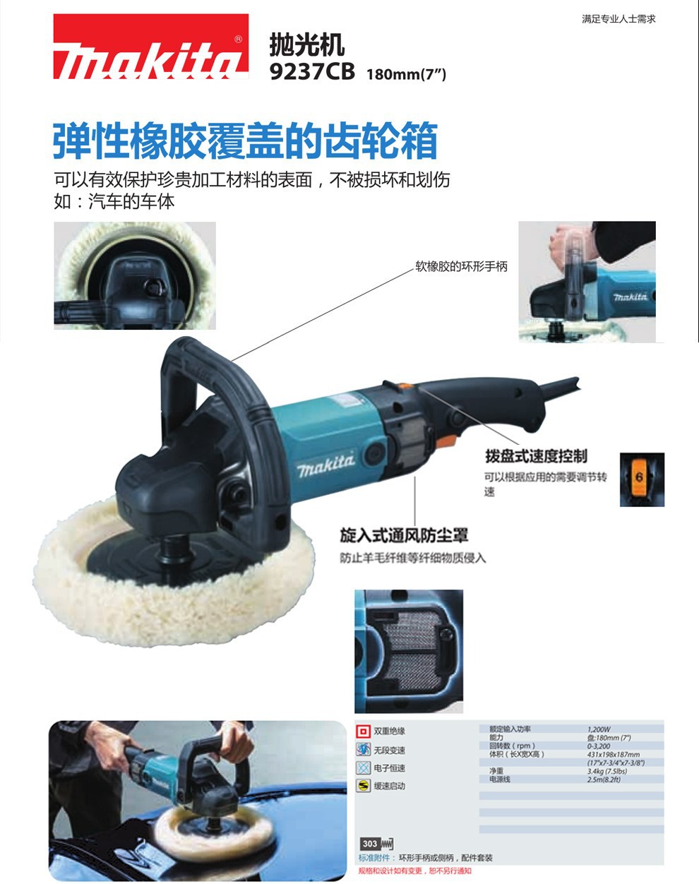Makida Japón importación Makida 180mm máquina de pulido máquina de cera de arena 1200W automóvil belleza profesional de pulido 92