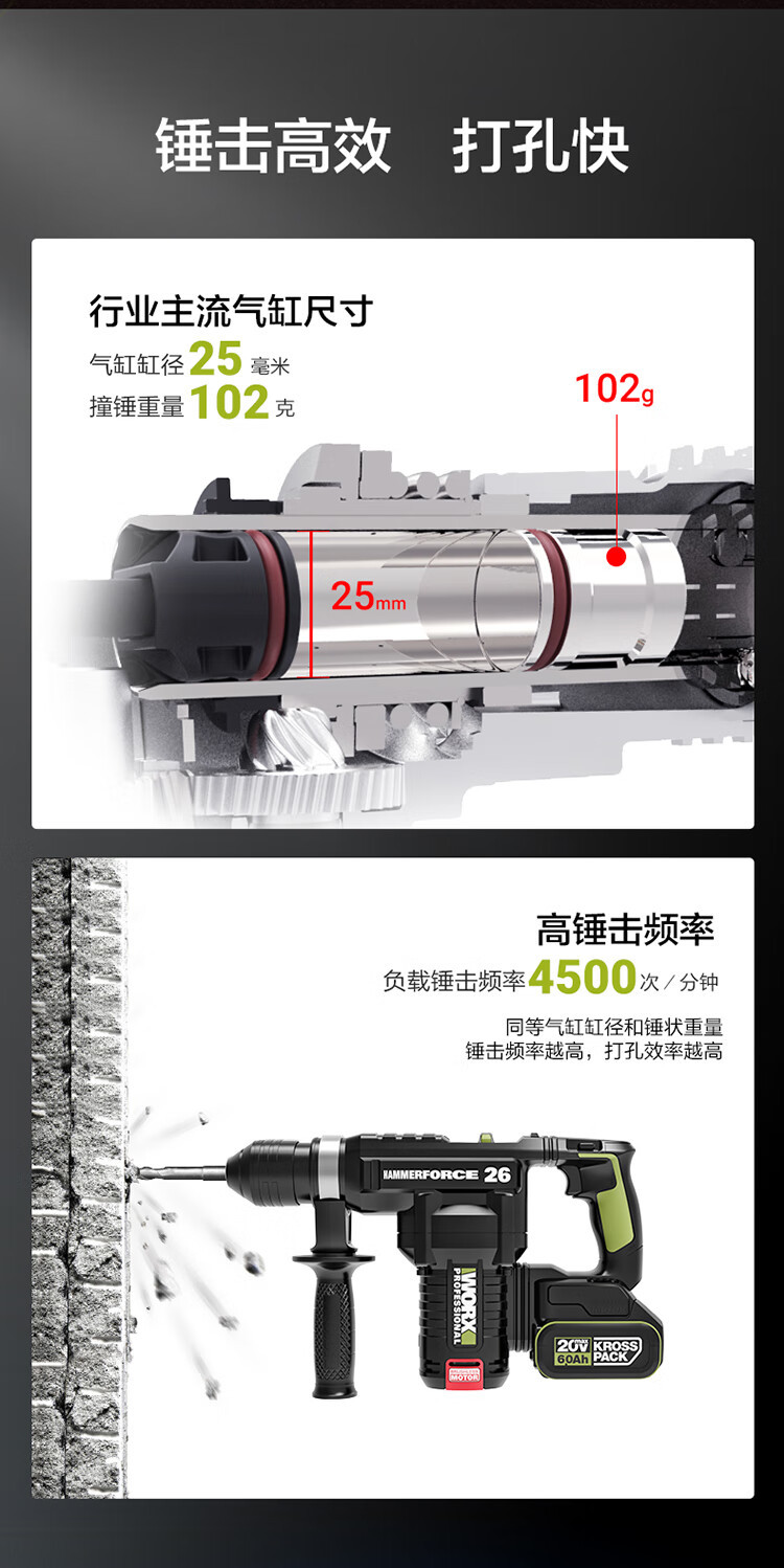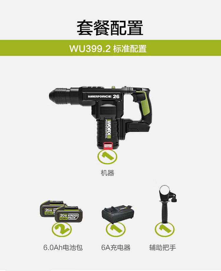 20V martillo eléctrico recargable sin escobillas WU399 batería de litio especial para perforación de concreto de ingeniería pesada