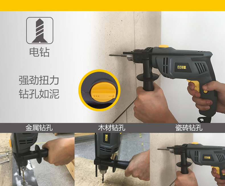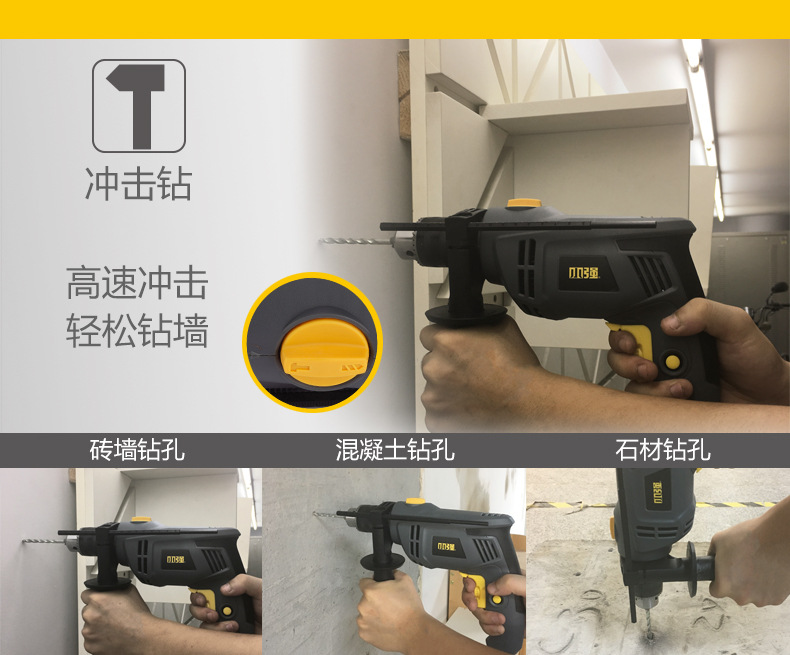 1581 taladro eléctrico de mano fuerte pequeño martillo de taladro de impacto doméstico sin electrodo cambio de velocidad eléctrico hacia adelante y hacia atrás 13MM taladro de impacto eléctrico