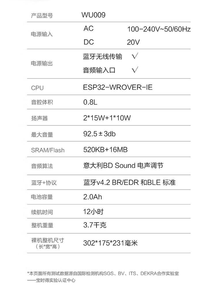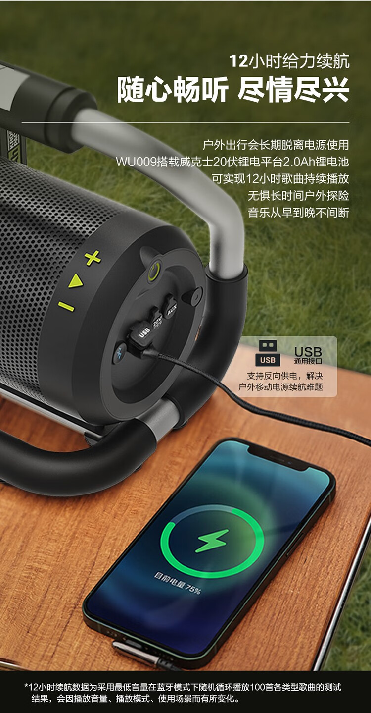 | Especificaciones | Wu009.9 [cargador sin batería de metal desnudo], altavoz Bluetooth wu009 [2.0ah single power], altavoz Bluetooth wu009 [4.0ah single power] |