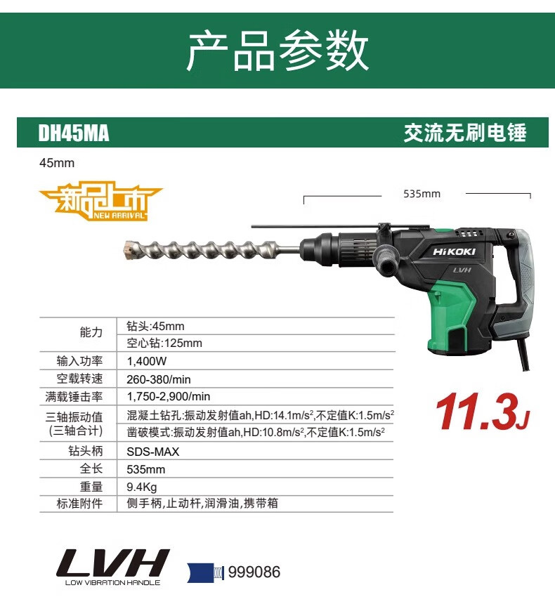 HiKOKI martillo eléctrico pesado original Hitachi picador eléctrico industrial de alta potencia taladro de impacto de velocidad variable
