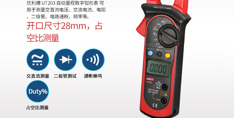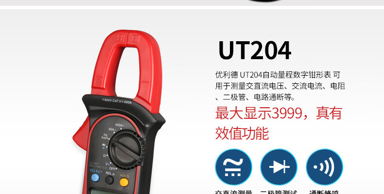 UID UNI-T UT203 AC / DC medidor de pinza digital medidor de pinza multímetro de medición de galvanómetro 400