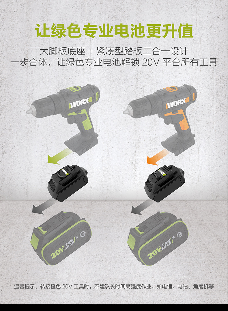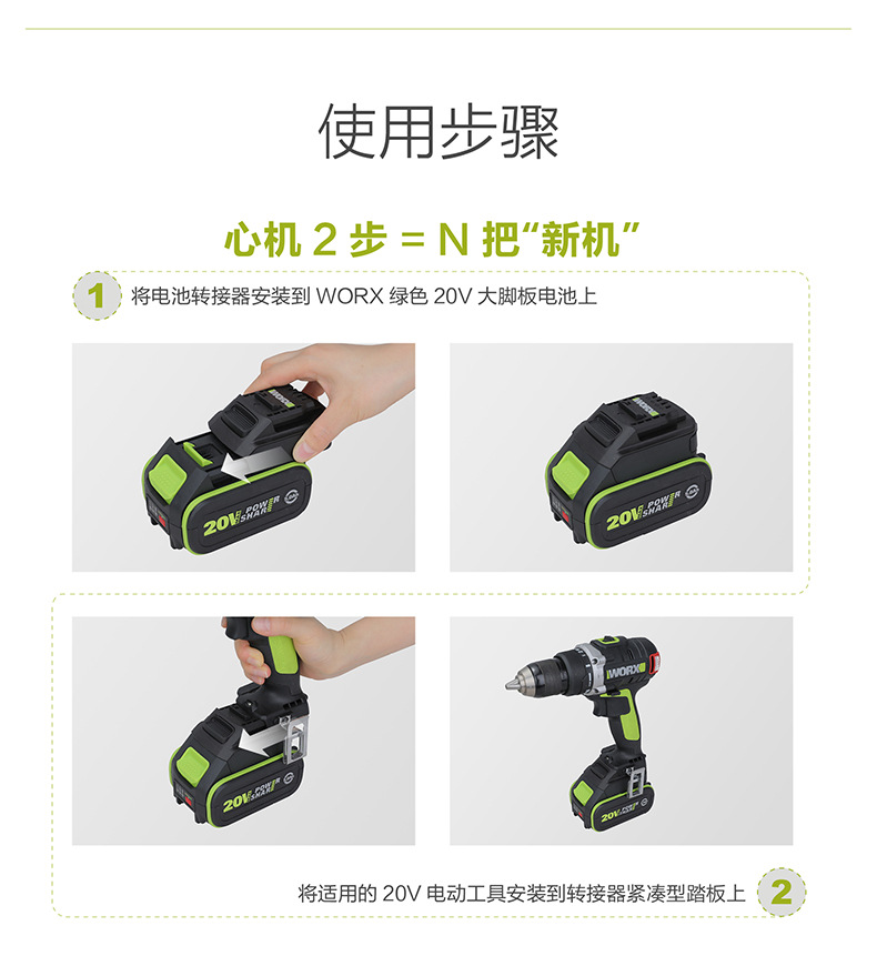 Adaptador de batería de litio WIX 20V WA4600 Adaptador de adaptador de placa de pie grande verde