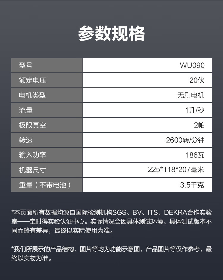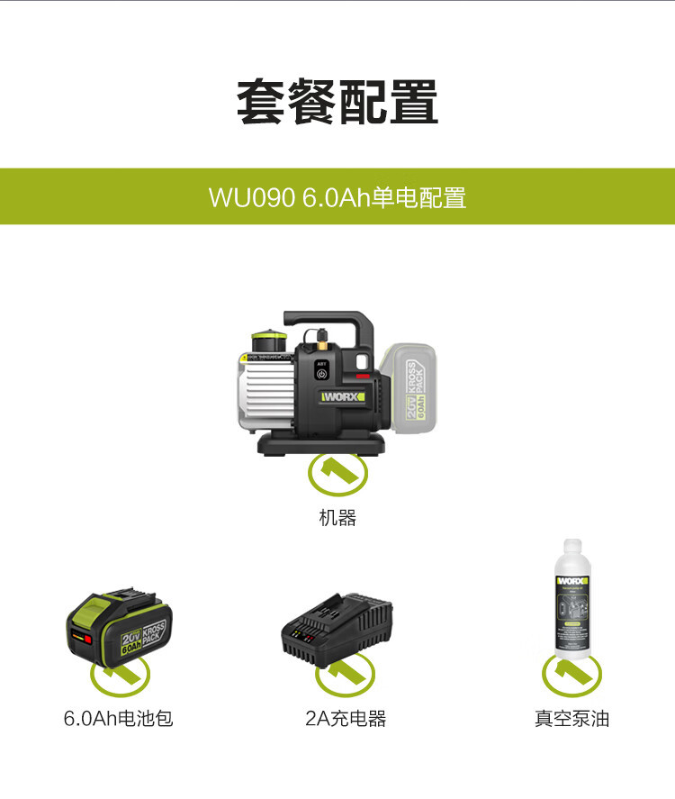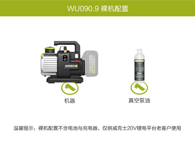 Bomba de vacío eléctrica de litio 20V WU090 aire acondicionado de laboratorio bomba de extracción de aire WU090.9 [metal desnudo sin metal]