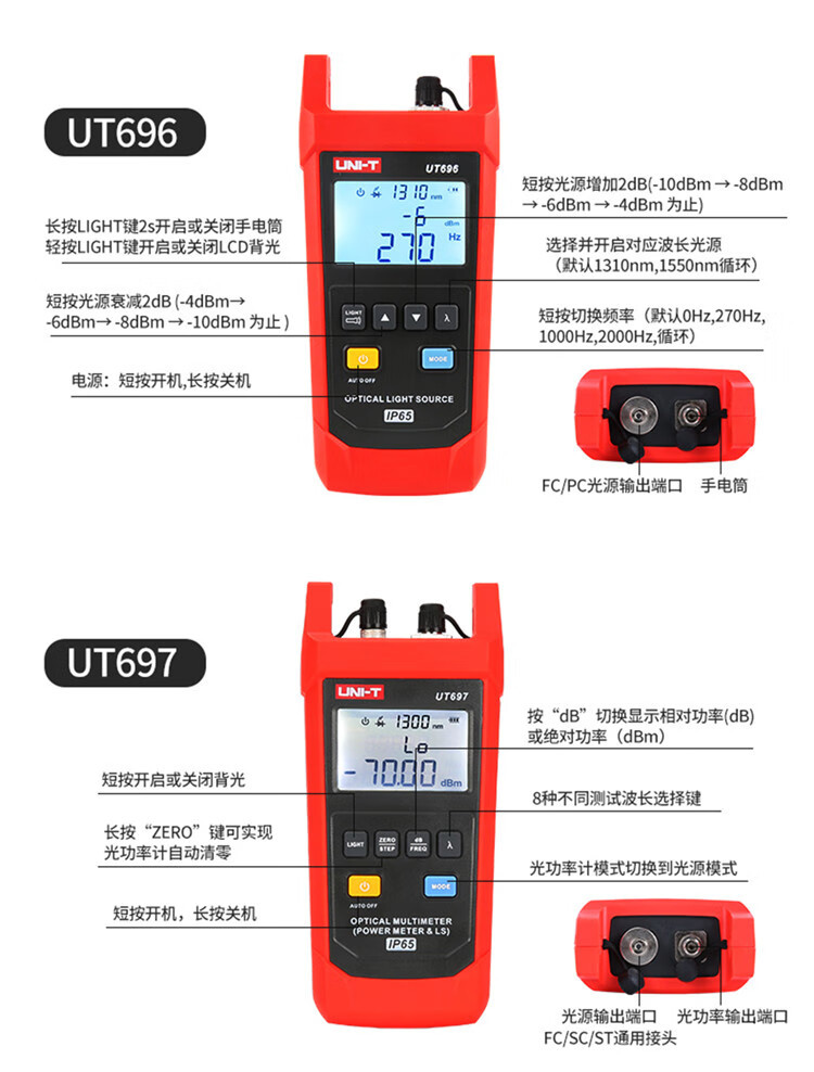UNI-T UT697 multímetro óptico medidor de potencia óptica medidor de fuente de luz estable