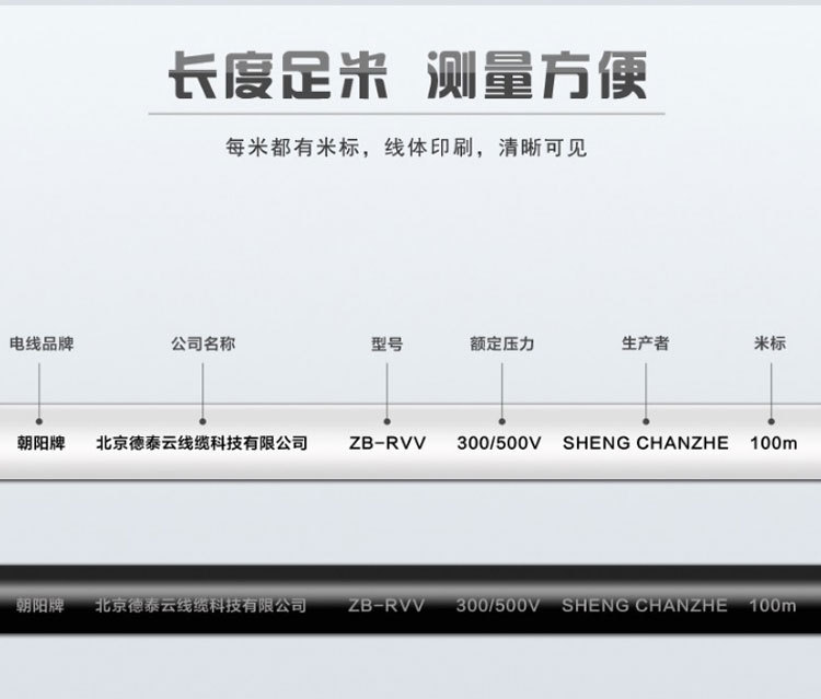 Cable eléctrico Chaoyang ZB-RVV Cable de chaqueta Cable de alimentación blanco 3 núcleos ignífugo estándar nacional 2.550 metros cuadrados