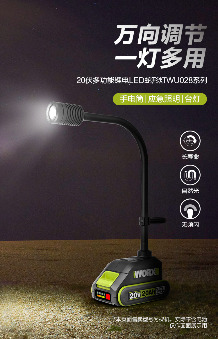 20V litio LED lámpara de escritorio de carga linterna linterna de luz al aire libre WU028.9 [metal desnudo