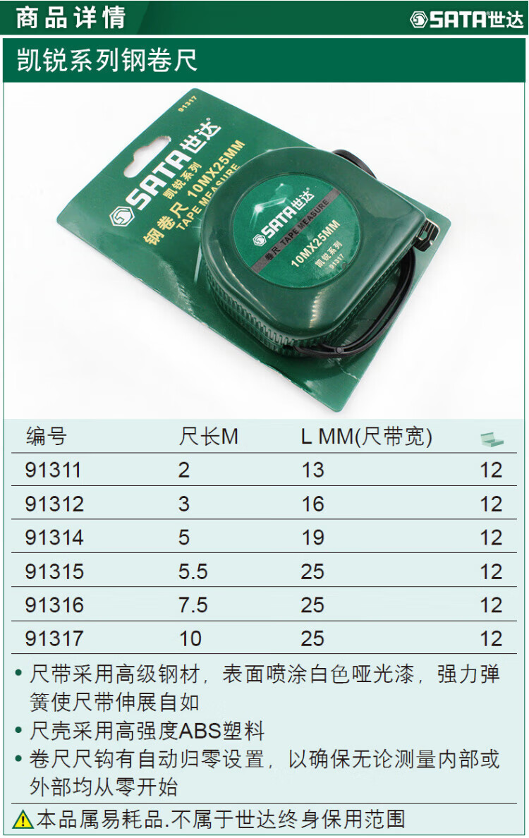 SATA 91315 Calibre serie de cinta de acero 5.5m * 25mm