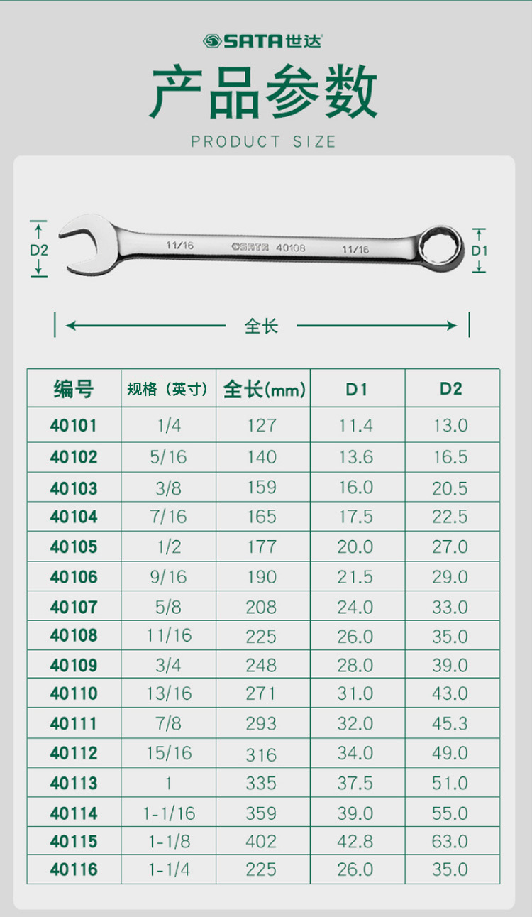 SATA 40114 Inglés llave de doble propósito totalmente pulido