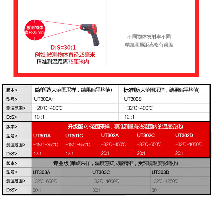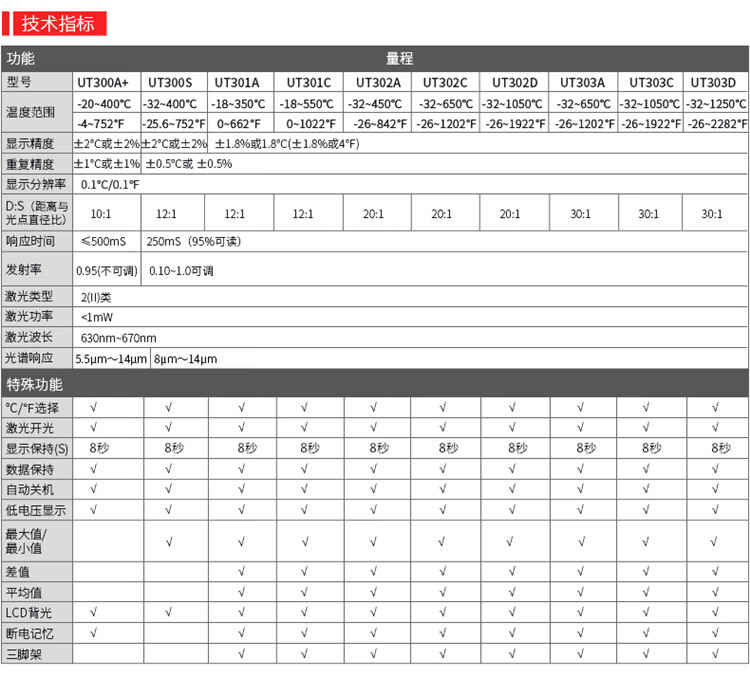 Termómetro infrarrojo UT300A UNI-T UT300A Termómetro infrarrojo industrial portátil de alta precisión